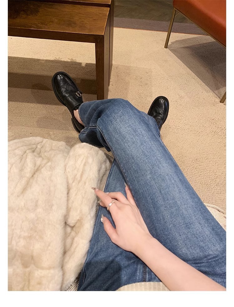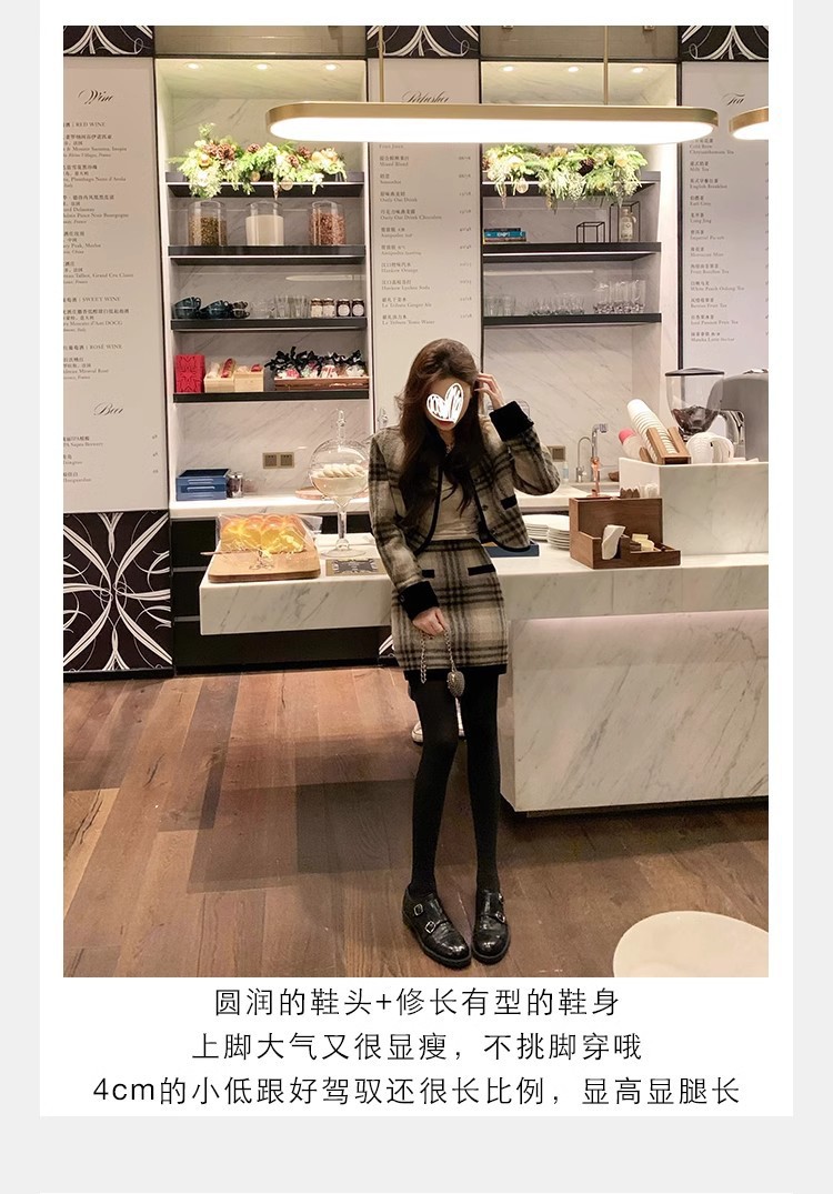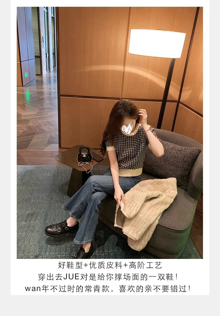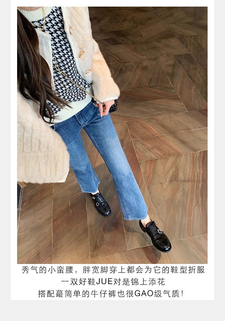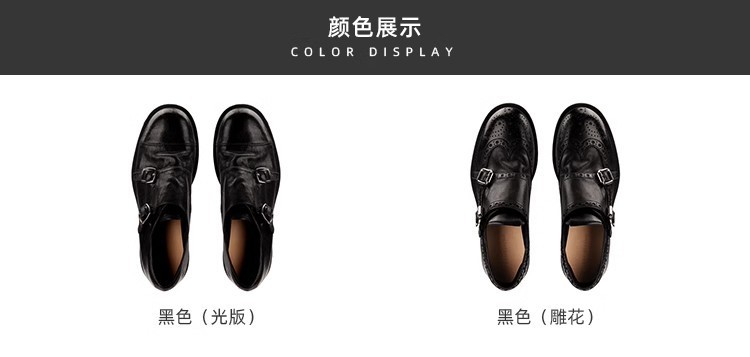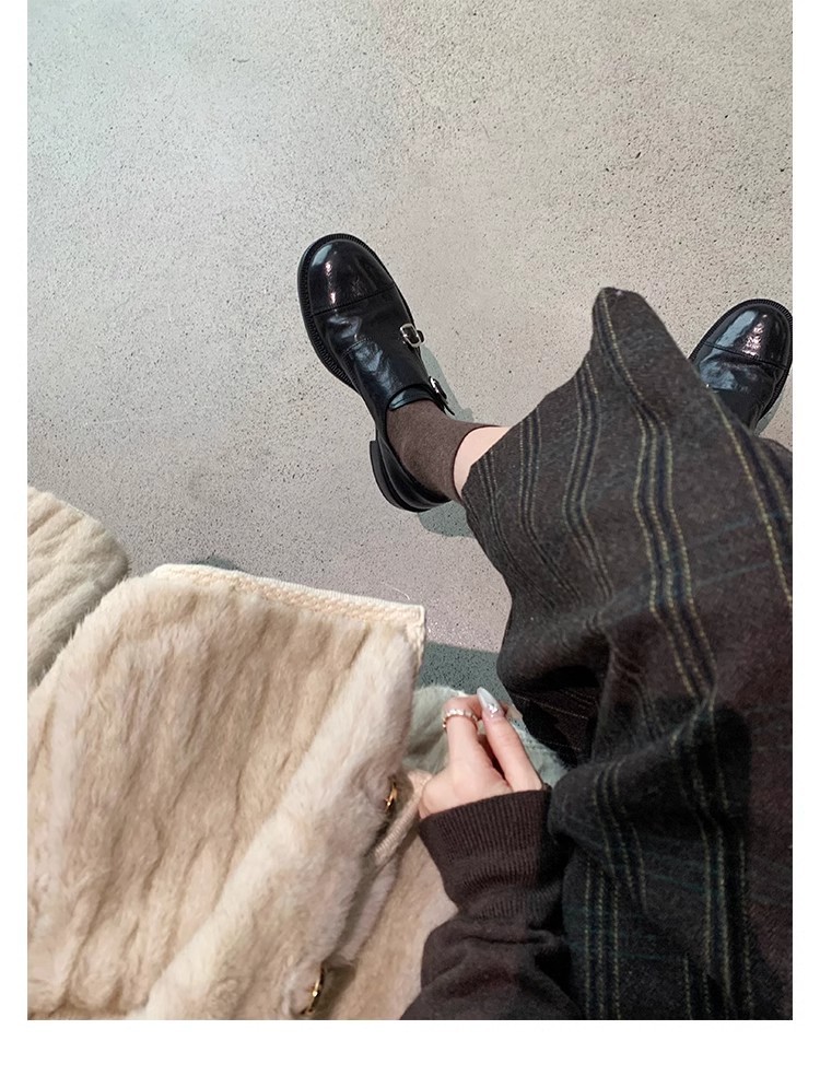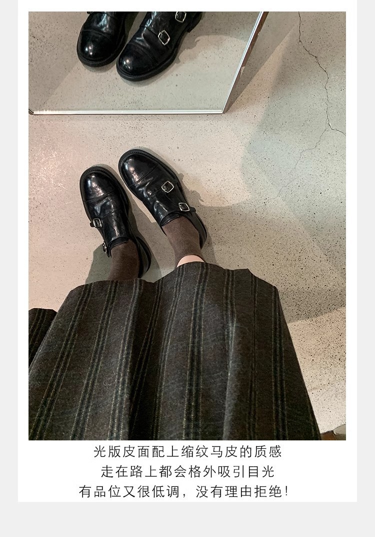 재고 빈티지 프랑스 수축 말 가죽 조각 더블 버클 라운드 발가락 두꺼운 힐 영국 아카데미 스타일 캐주얼 작은 가죽 신발스토어 가기