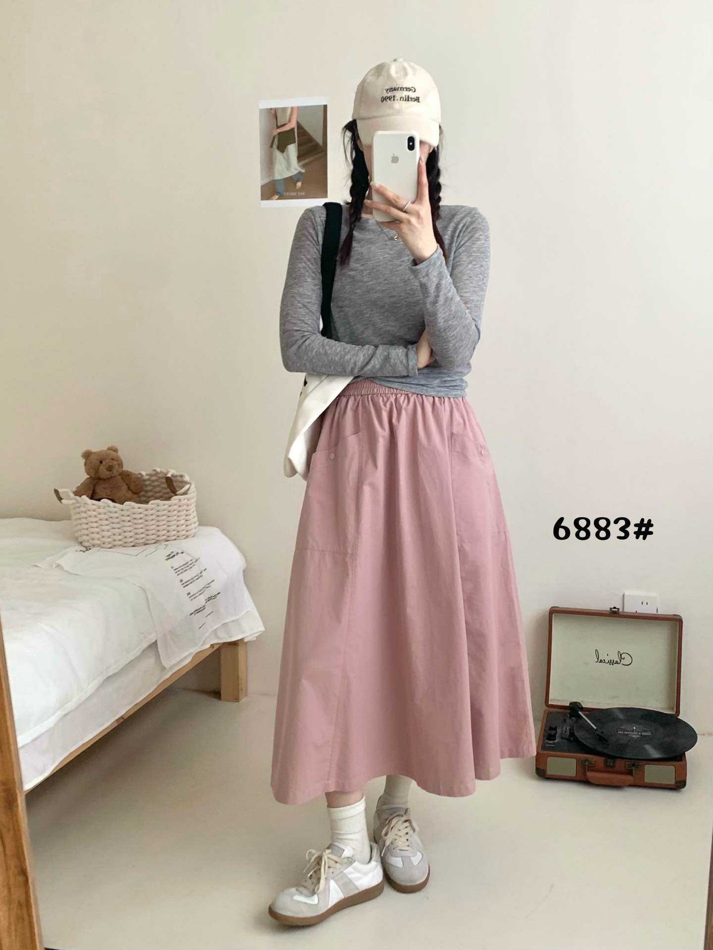 심플 올 매치 하이 허리 대형 포켓 스커트 여성 봄 새로운 한국 스타일 슬림핏 힙합 커버 우산 스커트스토어 가기