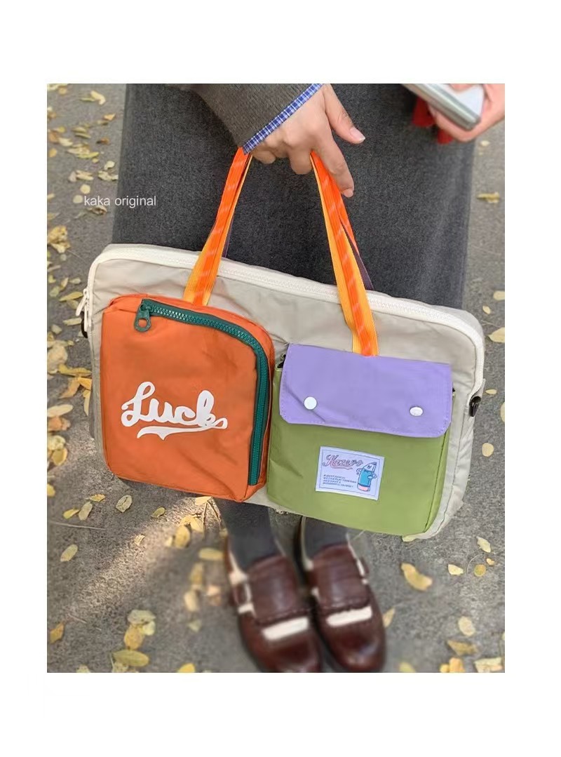 일본식 도파민 컬러블록 크로스백 대용량 16인치 겸용 노트북 가방 출퇴근용 휴대용 숄더백 태블릿 가방