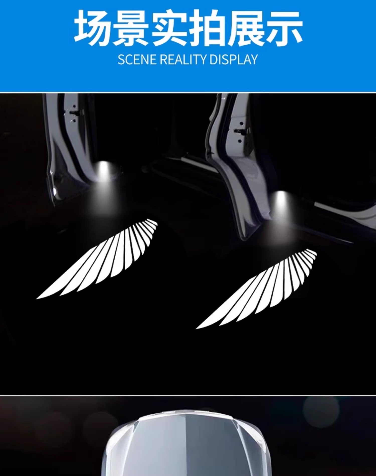 천사 날개 문 환영 빛 날개 문 오프닝 빛 프로젝션 조명 지상에 빛나는 자동차 변경 장식 유도 차 방 가드