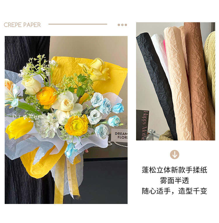 꽃 사랑 눈 나이 종이 방수 푹신한 손으로 문지른 종이 꽃 꽃다발 포장 주름 안감 종이 diy 꽃 가방 꽃스토어 가기