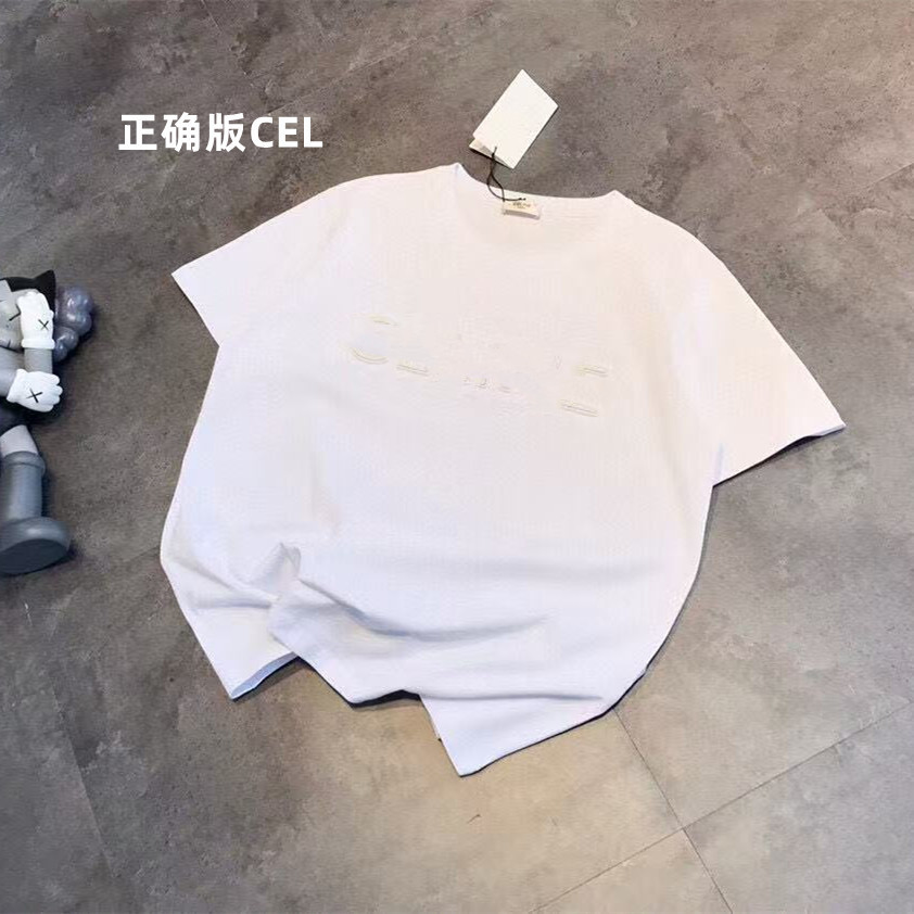 CEL 2025 스틸 씰 레터 반팔 남녀 커플 티셔츠 기본 단순 솔리드 컬러 반소매 캐주얼 크로스 보더 라이브 방송스토어 가기