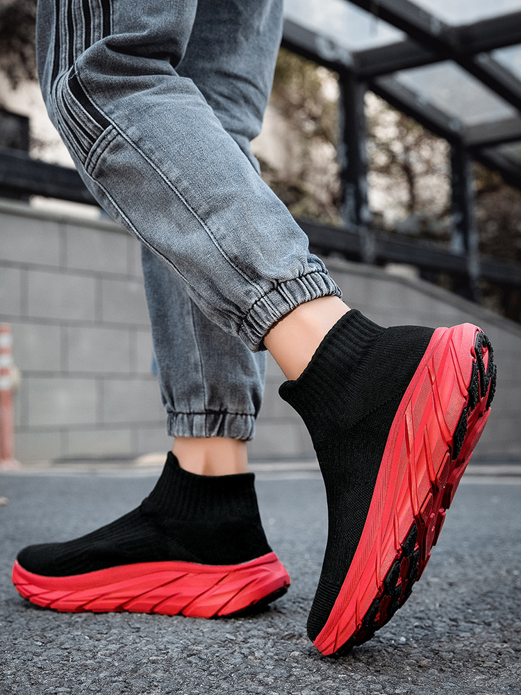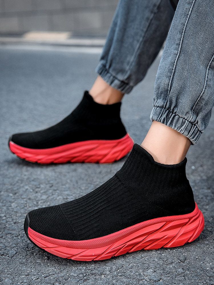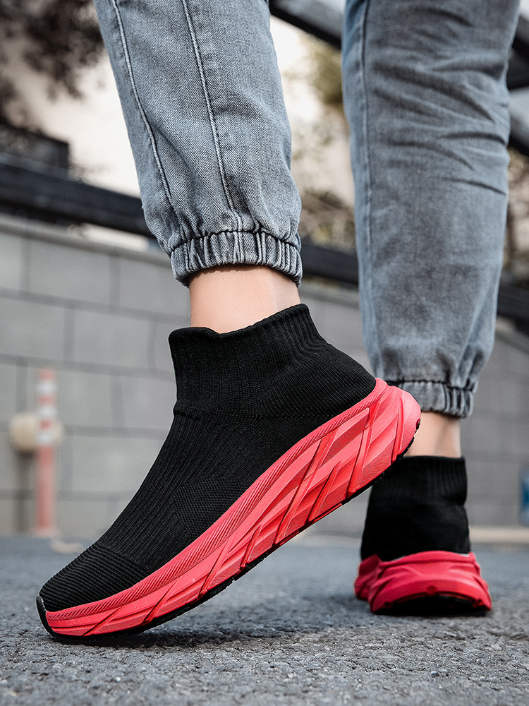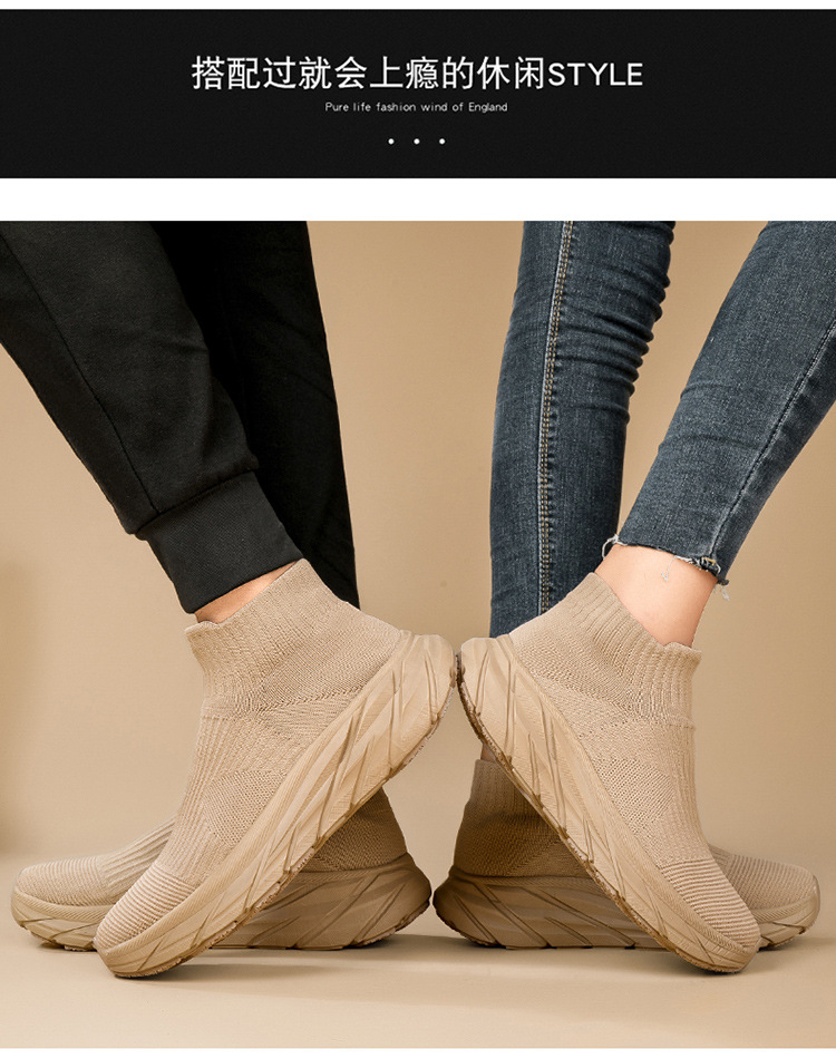 국경 간 남성 신발 새 겨울 기모 커플 슬립 온 하이 탑 양말 신발 여성 캐주얼 운동화 하이킹 신발