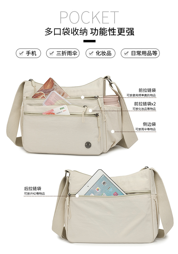 2025 봄 새로운 대용량 여성 캐주얼 가방 경량 나일론 가방 국경 패션 어깨 크로스 바디 백 여성 가방