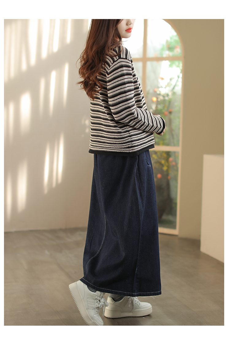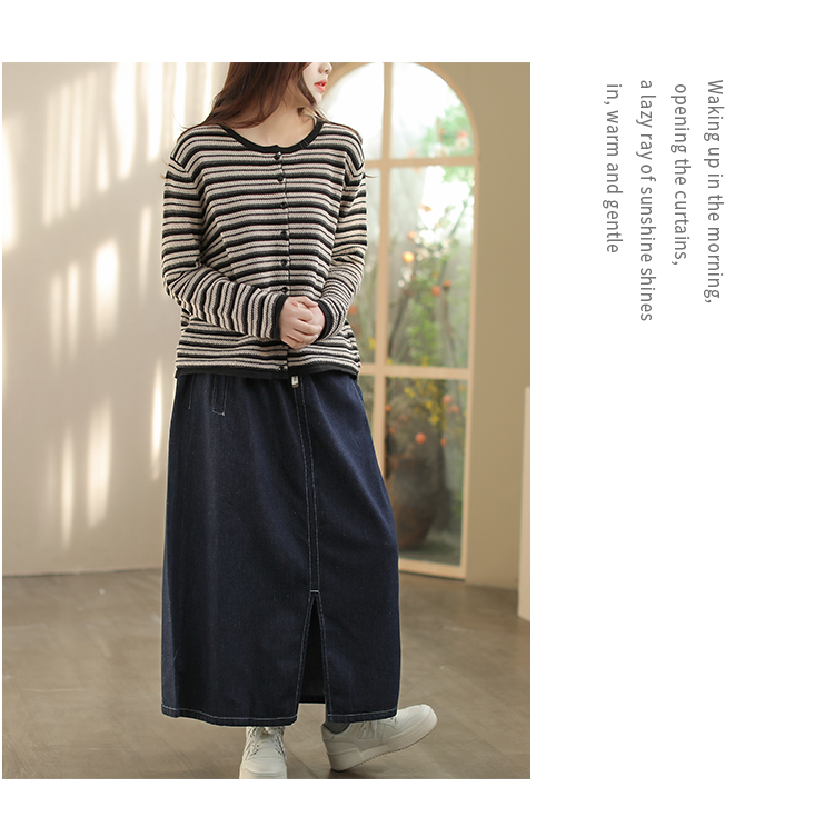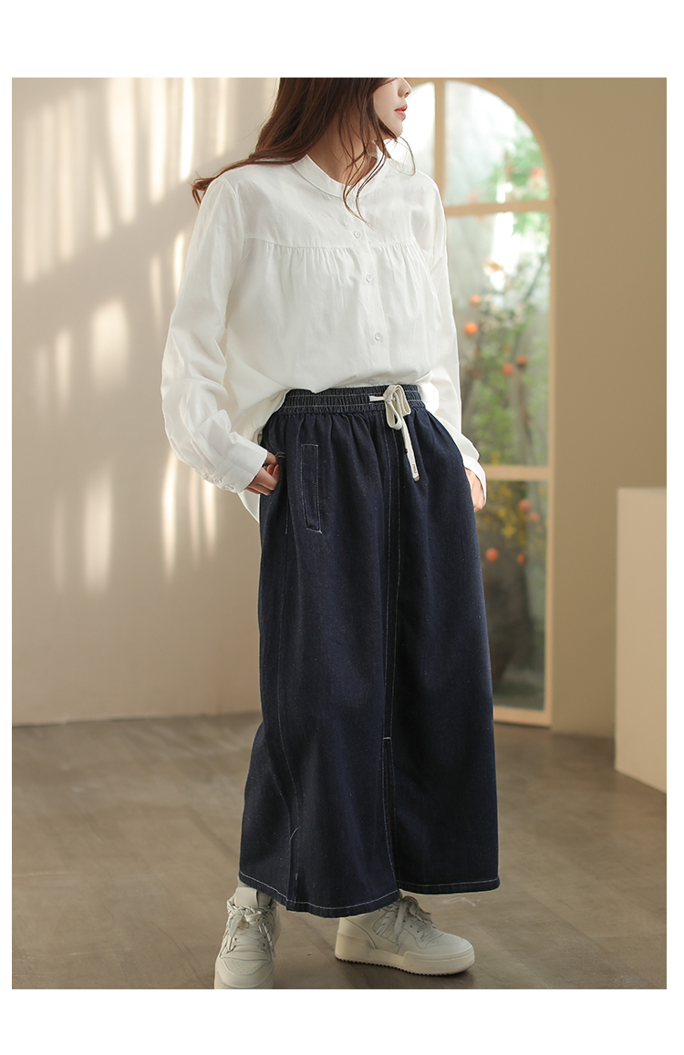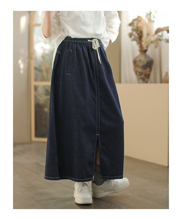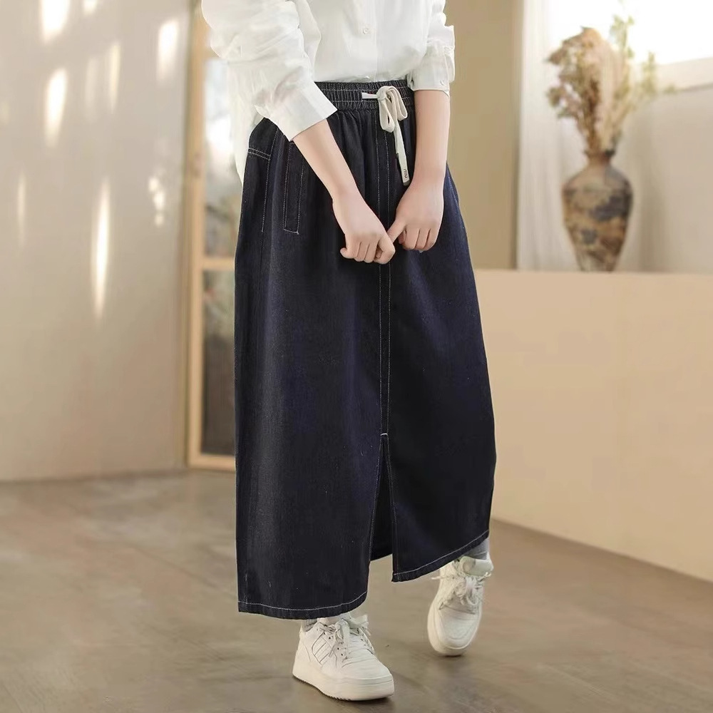 2025 봄 데님 스커트 여성 캐주얼 예술적 느슨한 통근 여성 올 매치 레트로 패션 여성 A 라인 스커트