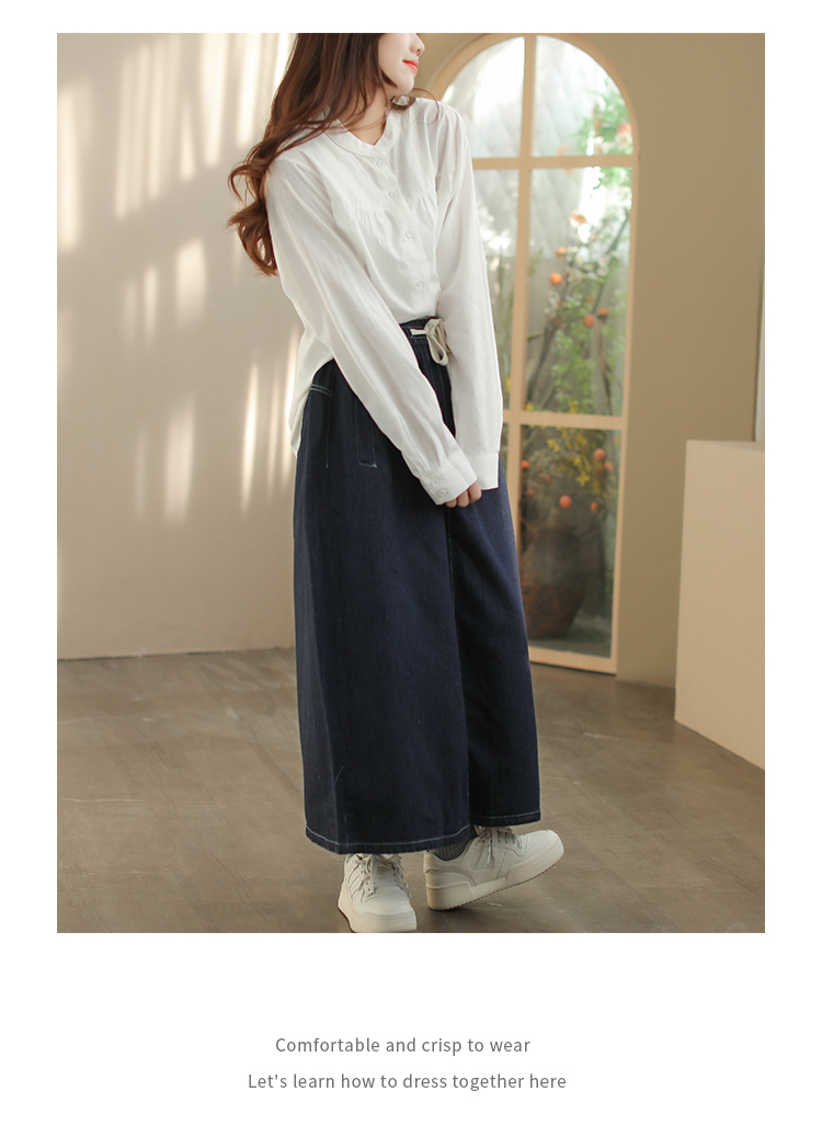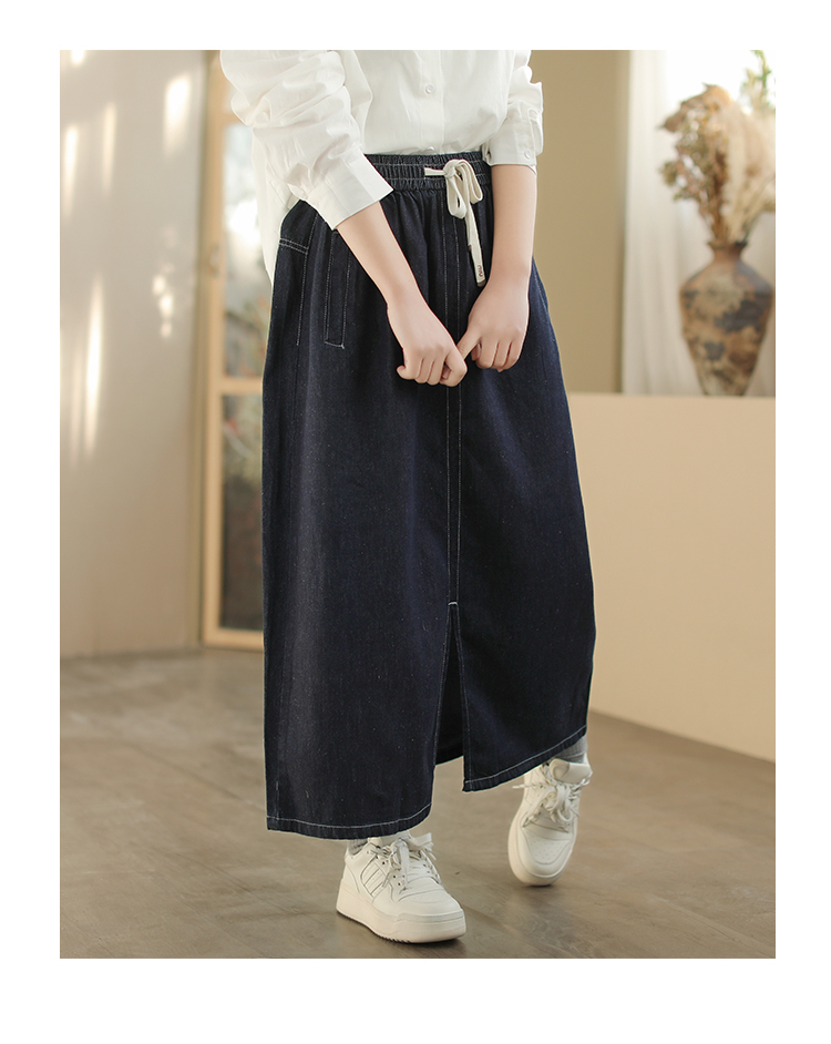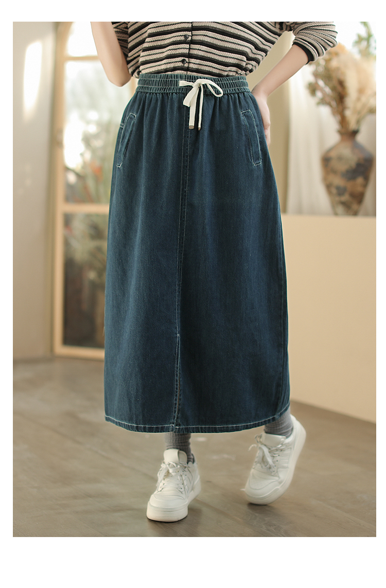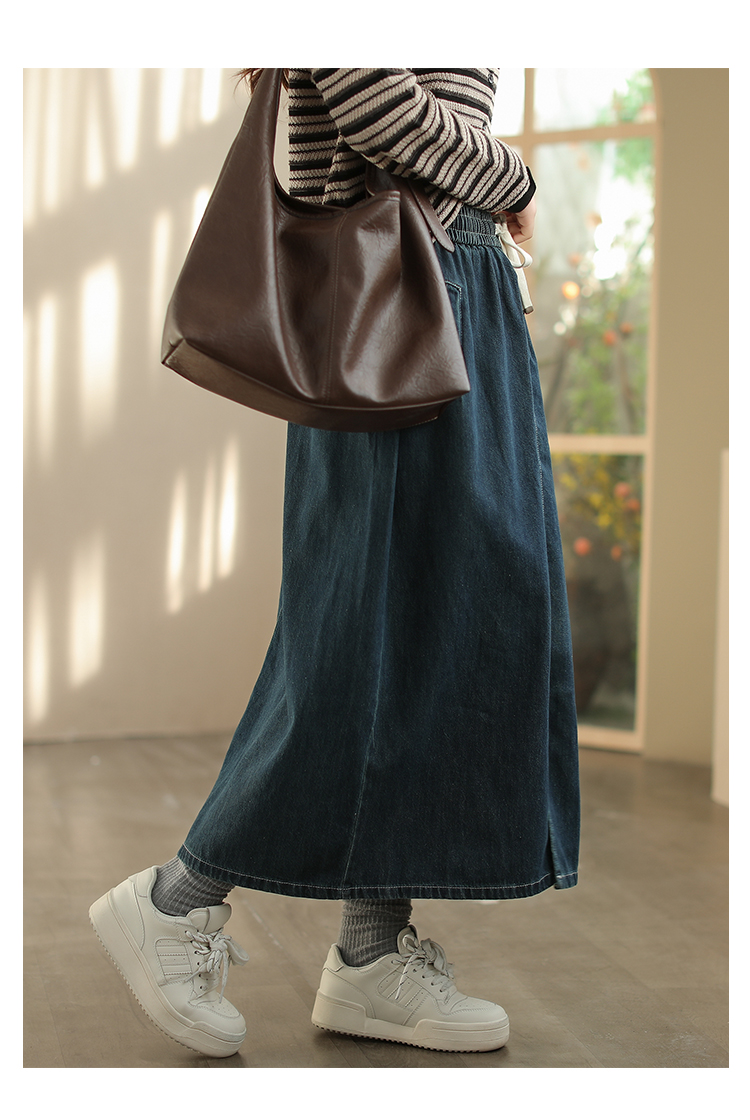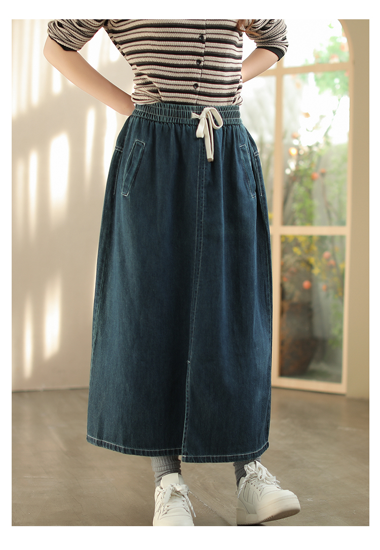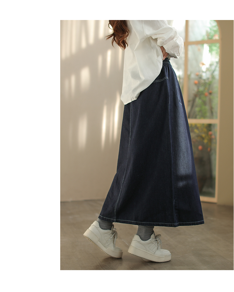 2025 봄 데님 스커트 여성 캐주얼 예술적 느슨한 통근 여성 올 매치 레트로 패션 여성 A 라인 스커트스토어 가기