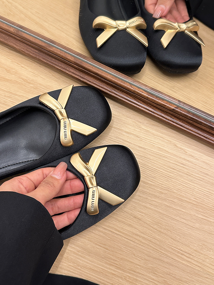 작은 내부 높이 증가 여성 신발 2025 봄 및 가을 새로운 도착 나비 버클 스커트 신발 스퀘어 헤드 플랫 싱글 레이어 신발스토어 가기