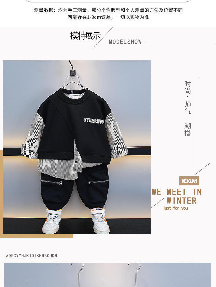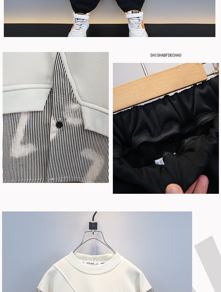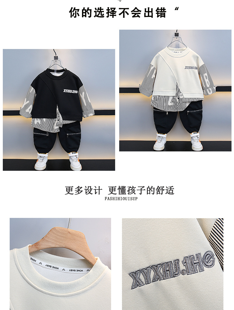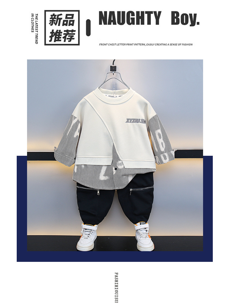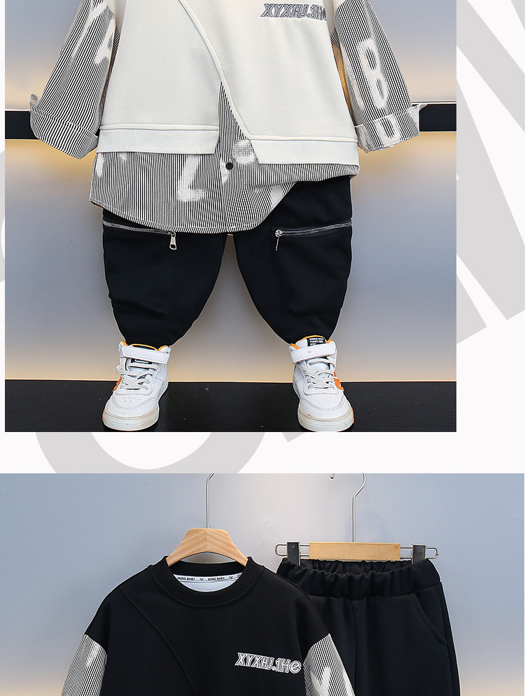 소년 봄 더블 밀크 실크 멋진 잘 생긴 가짜 투피스 스트라이프 스티칭 세트 2025 새로운 외국 스타일 레저 세트 조수스토어 가기