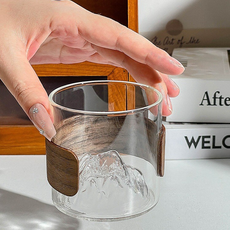 가정용 일본 산 뷰 컵 붕규산 유리 티 컵 후지 산 위스키 컵 빈티지 마운틴 뷰 와인 컵