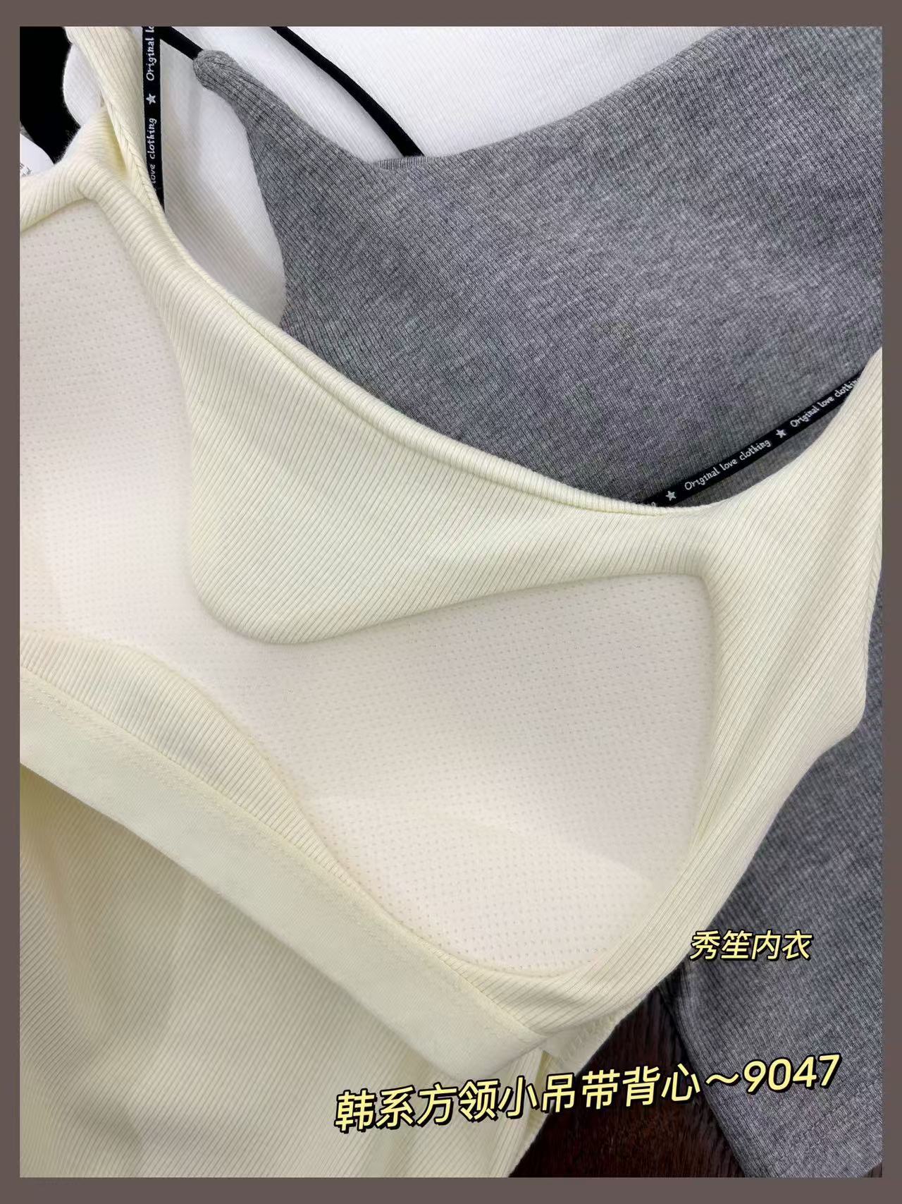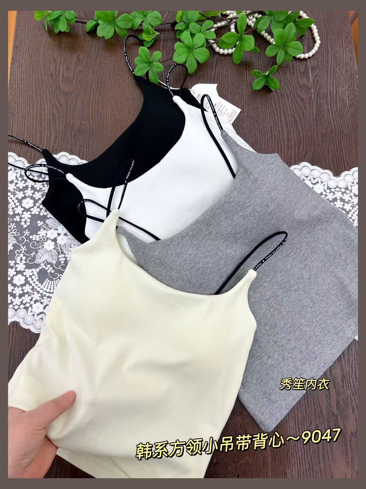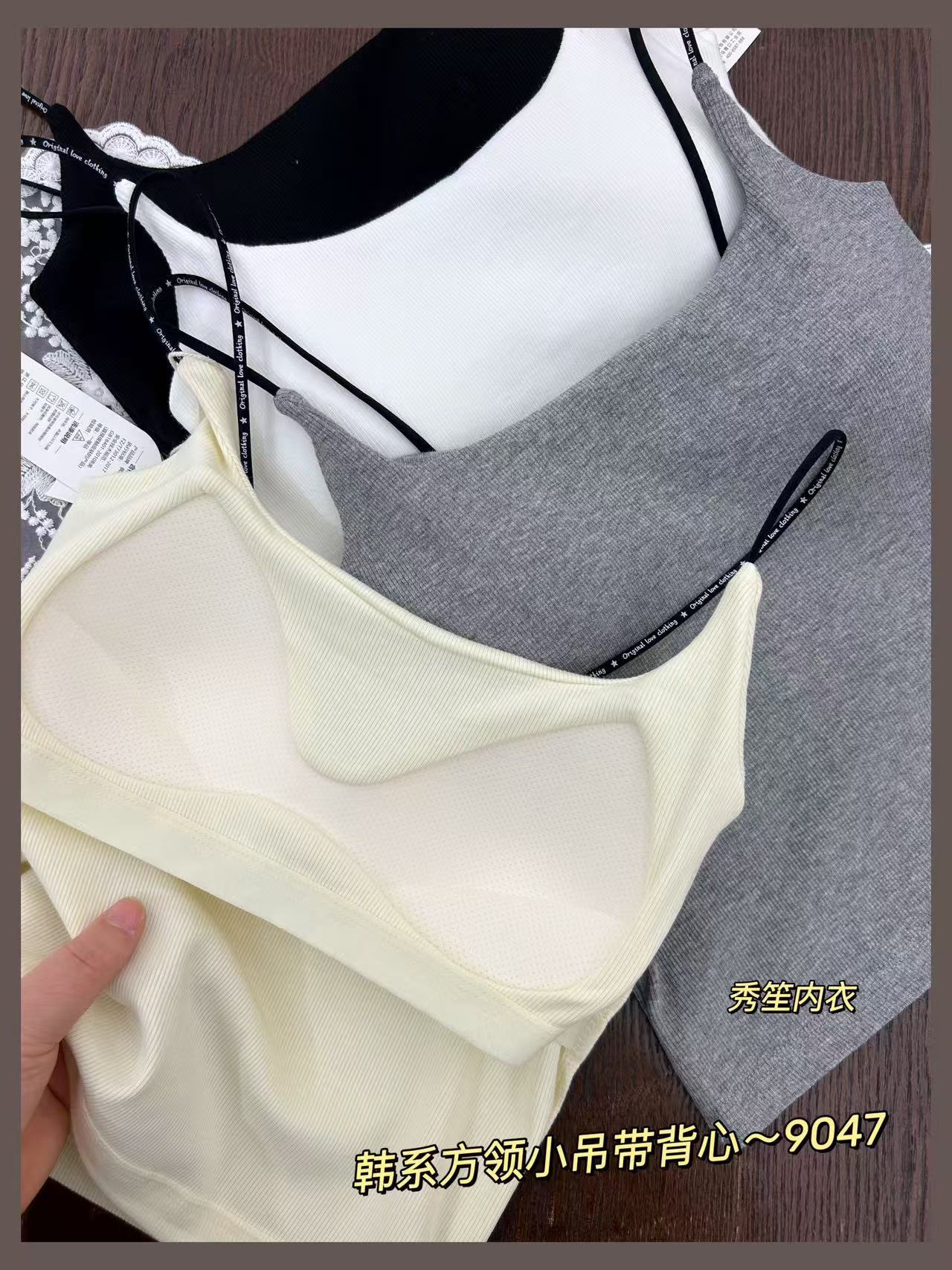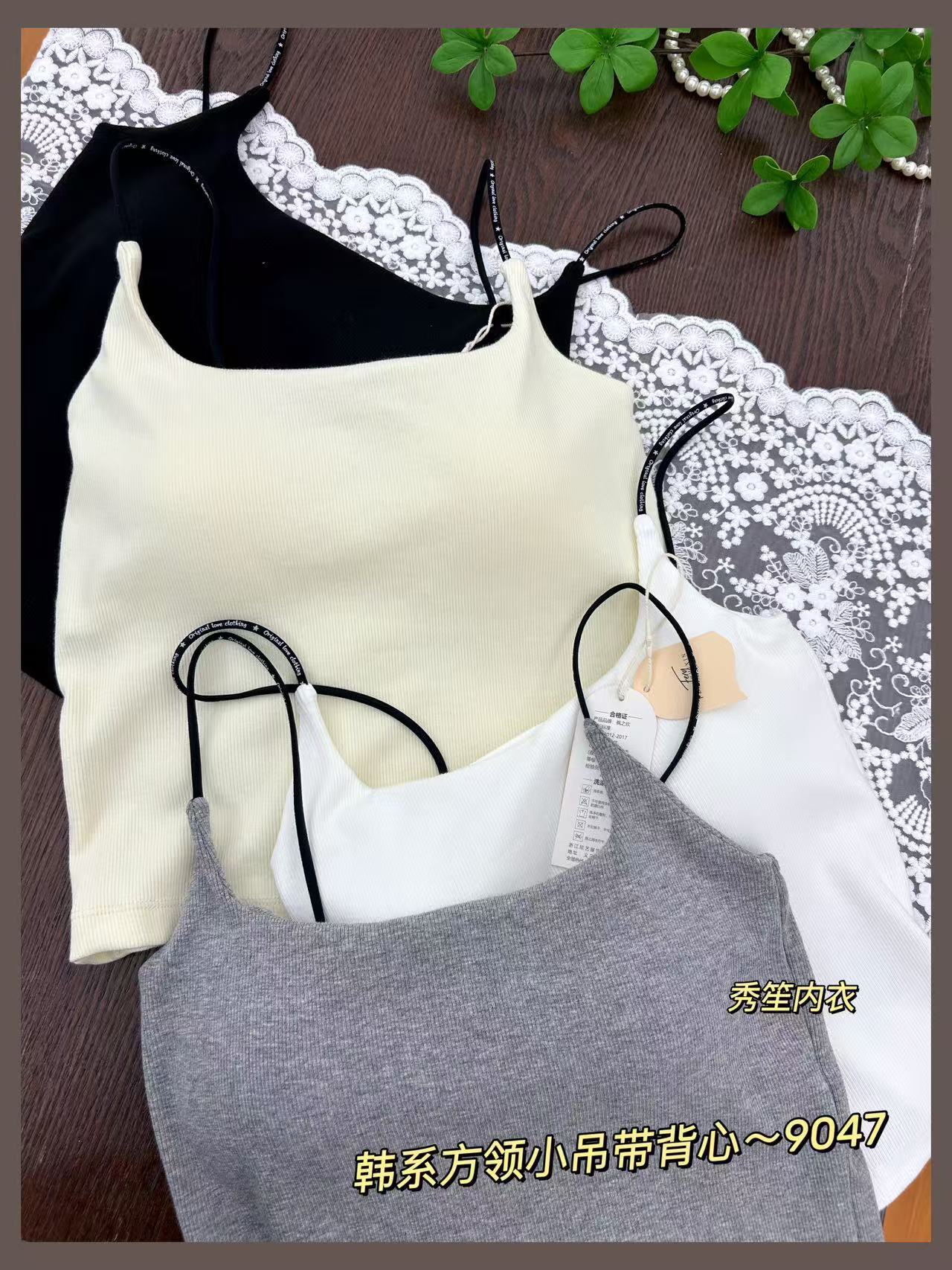 봄과 여름 새로운 9047 한국식 스퀘어 넥 스레드 작은 슬링 대조 레이스 고정 가슴 패드 슬링 조끼