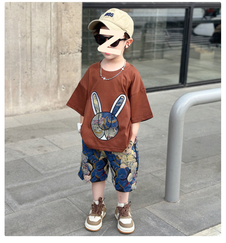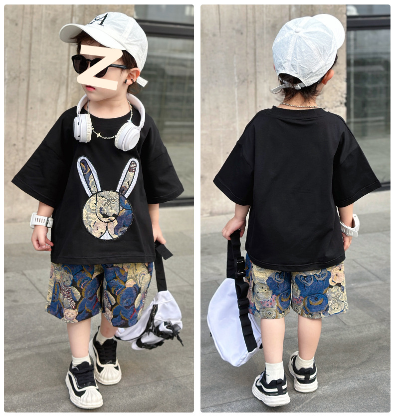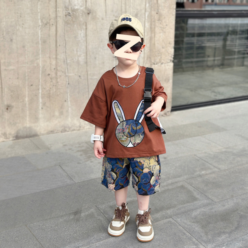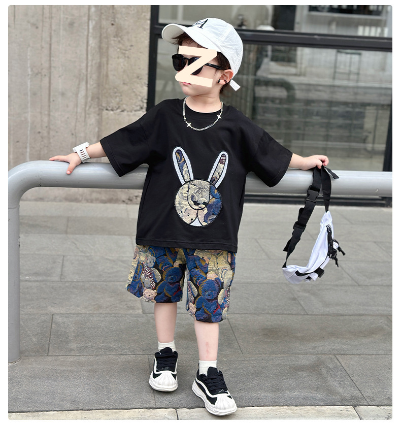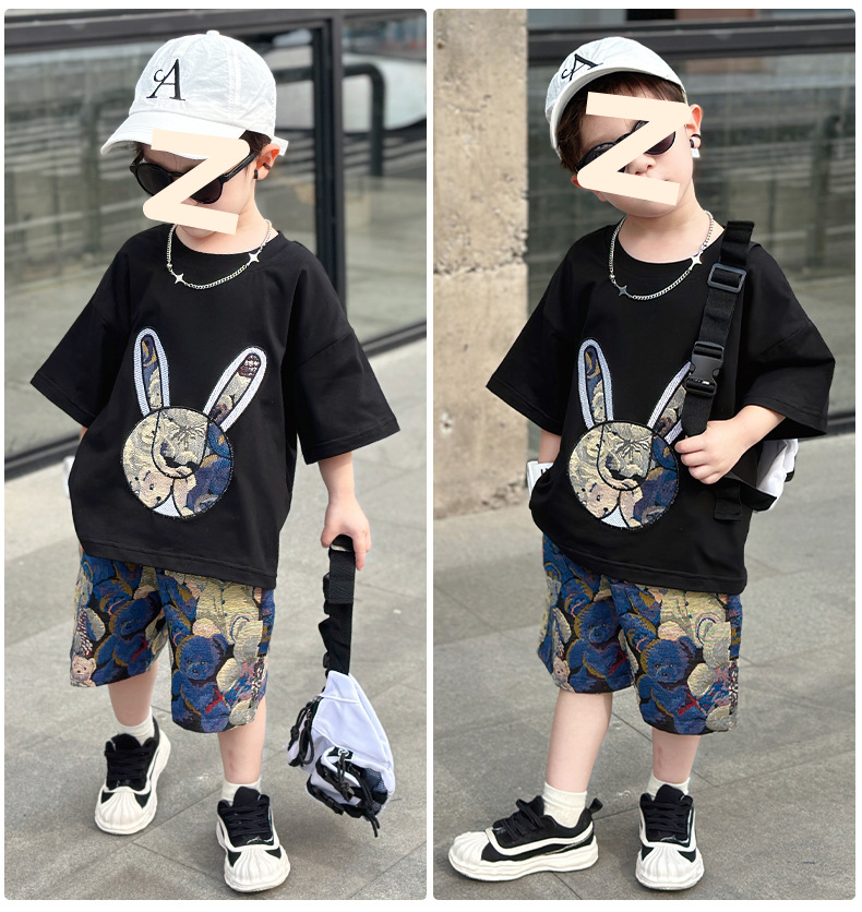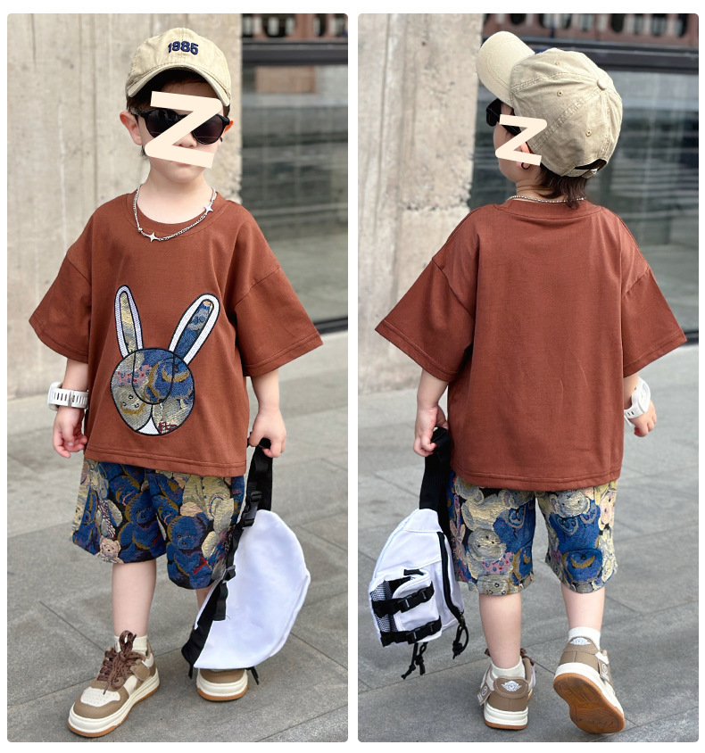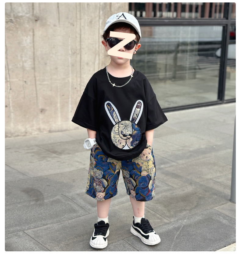 소년 여름 느슨한 반팔 티셔츠 5 점 바지 투피스 2025 신형 한국식 스포츠 세트스토어 가기