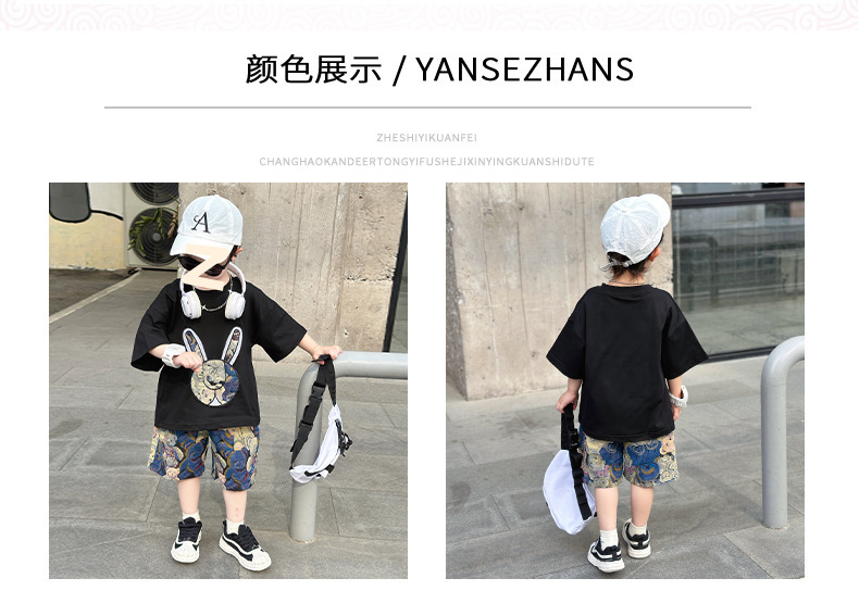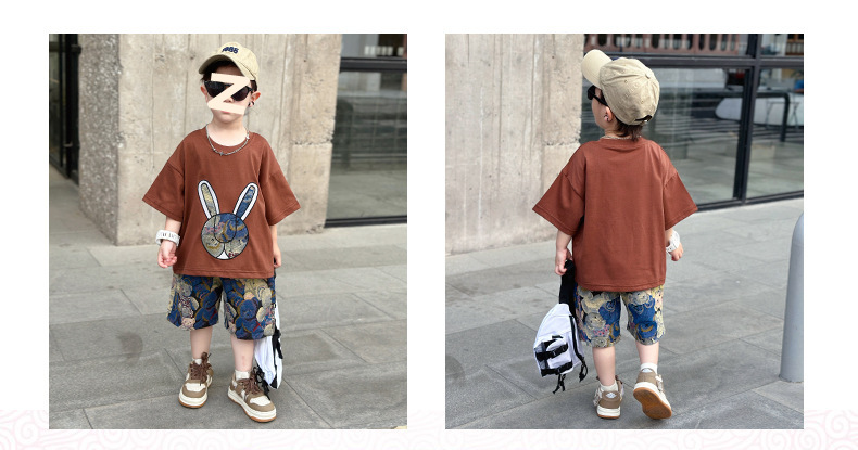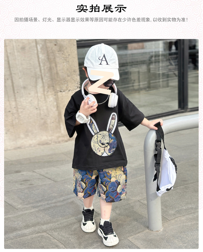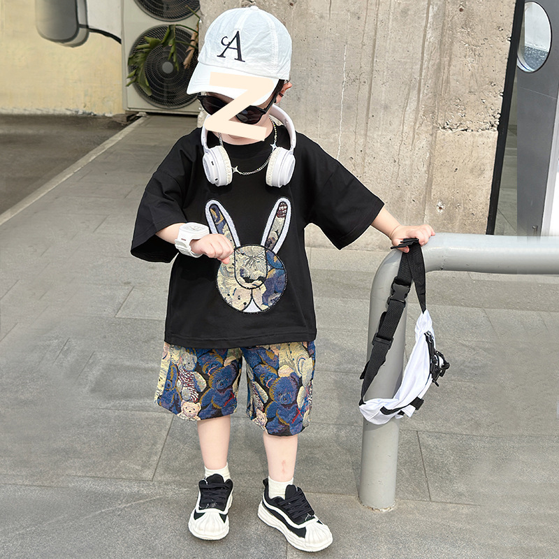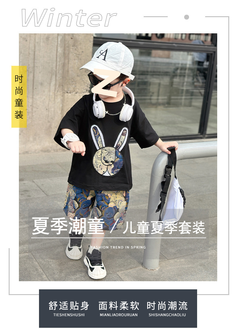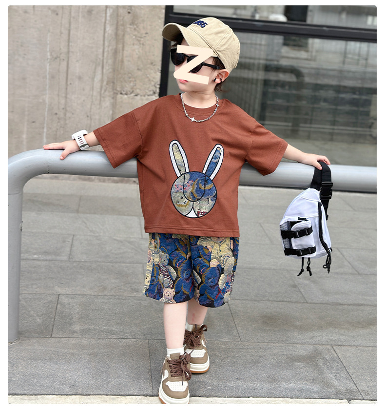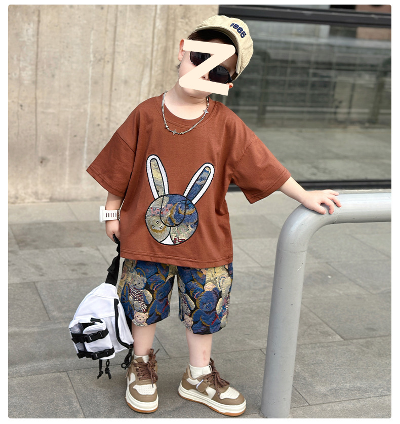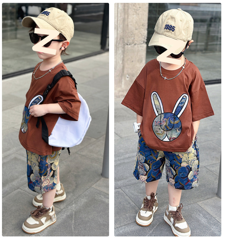 소년 여름 느슨한 반팔 티셔츠 5 점 바지 투피스 2025 신형 한국식 스포츠 세트스토어 가기