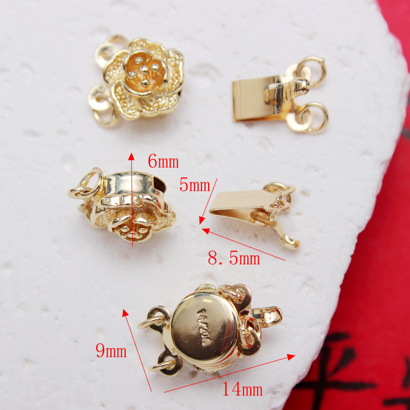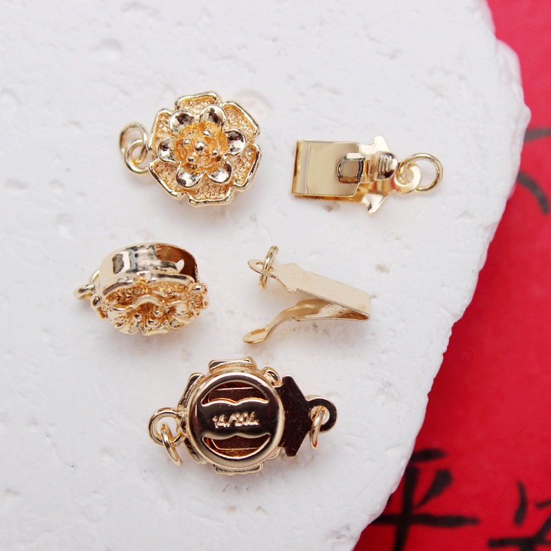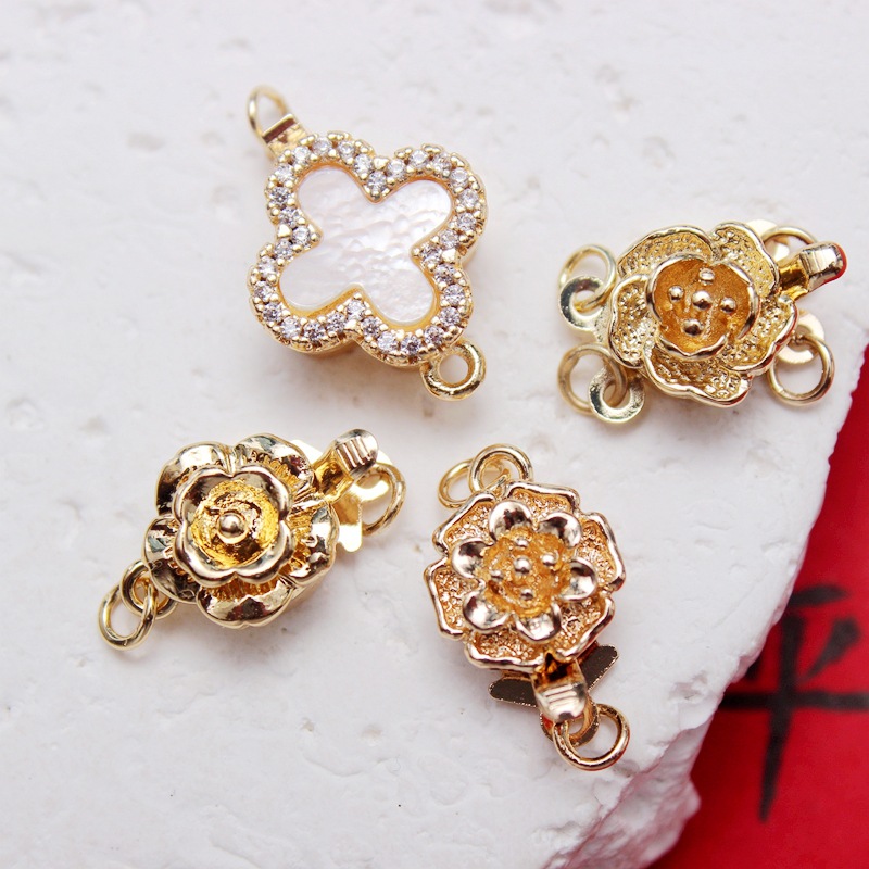 14K 골드 컬러 보존 세트 비드/지르콘 4 잎 클로버 꽃 버클 DIY 팔찌 목걸이 코일 연결 버클스토어 가기