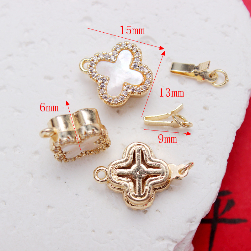 14K 골드 컬러 보존 세트 비드/지르콘 4 잎 클로버 꽃 버클 DIY 팔찌 목걸이 코일 연결 버클