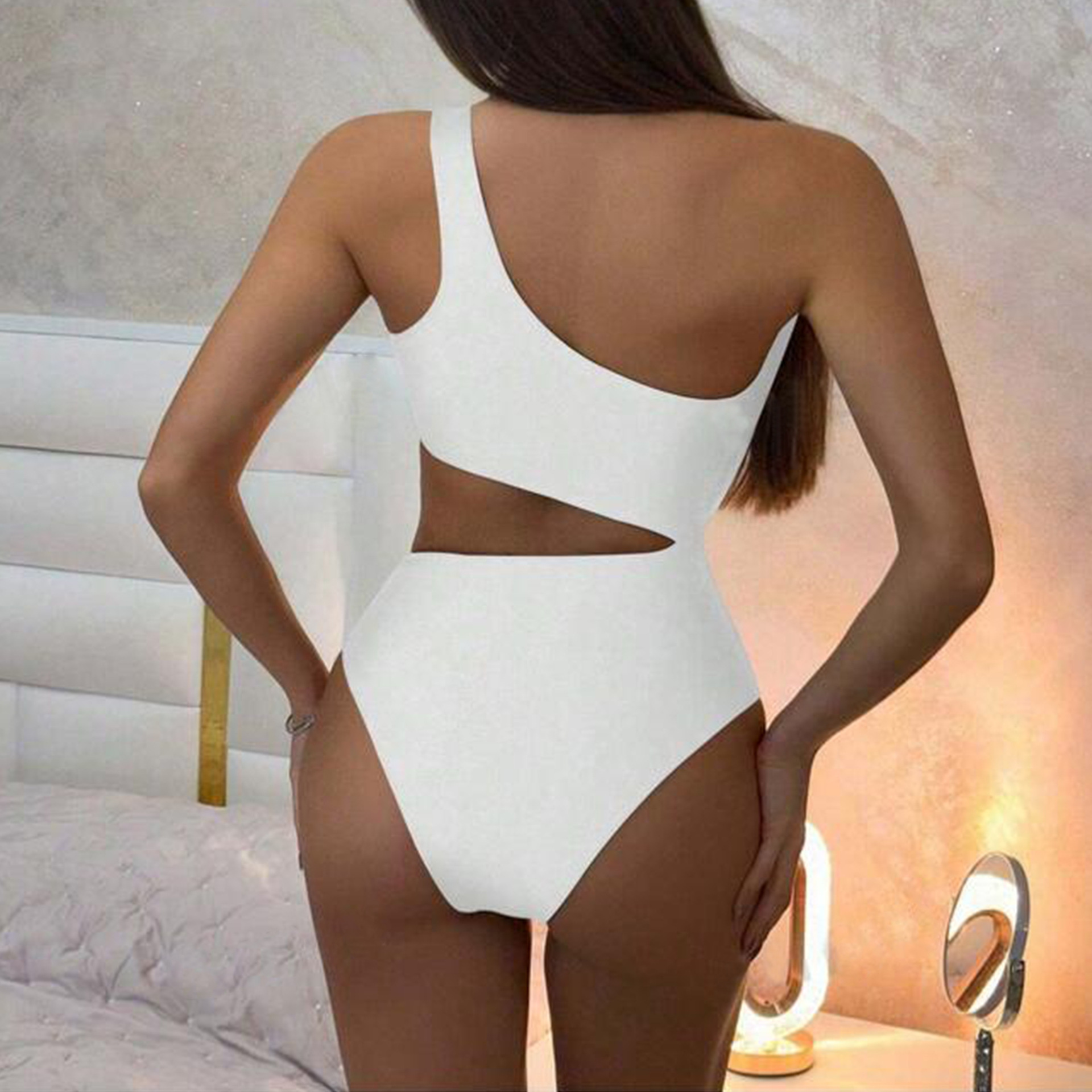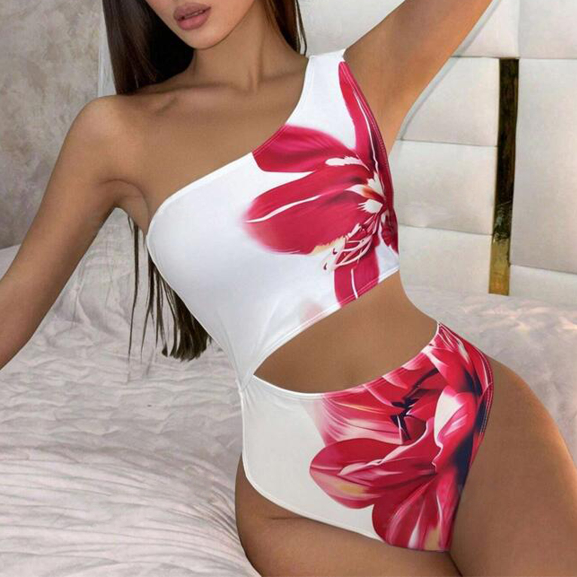 국경 2025 새로운 섹시한 어깨 유럽과 미국 패션 인쇄 빈 원피스 여성 수영복 수영복