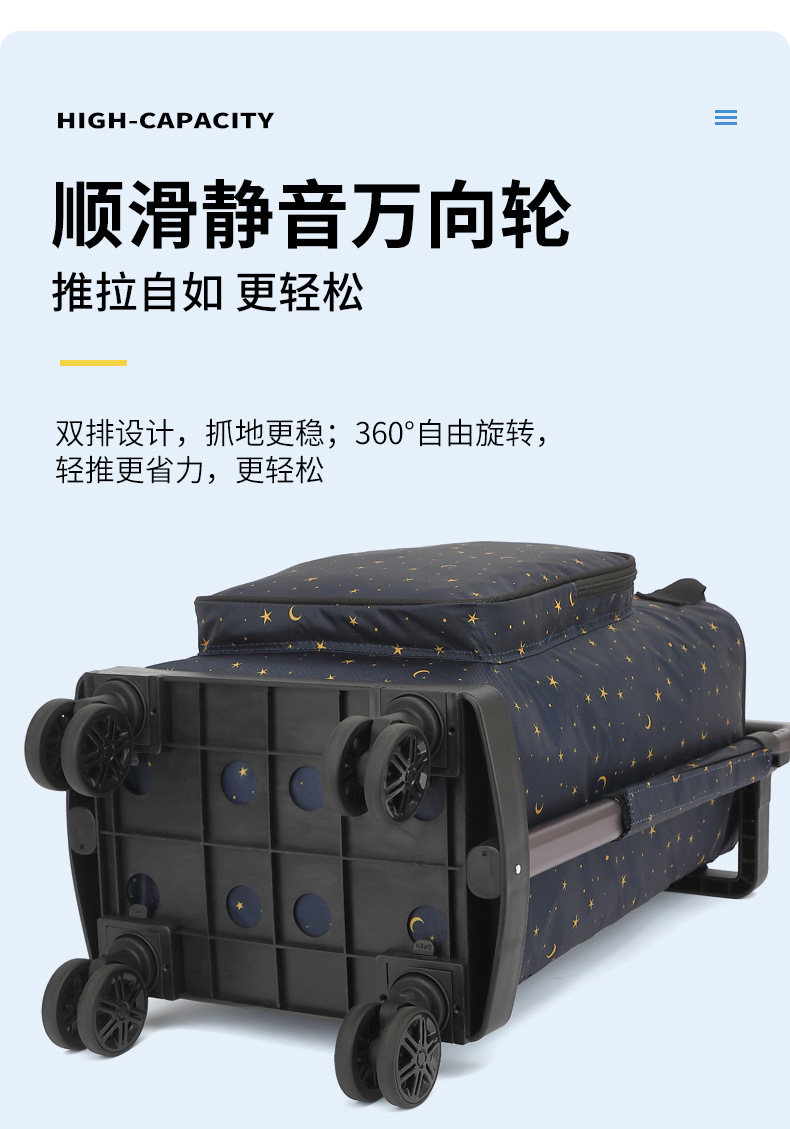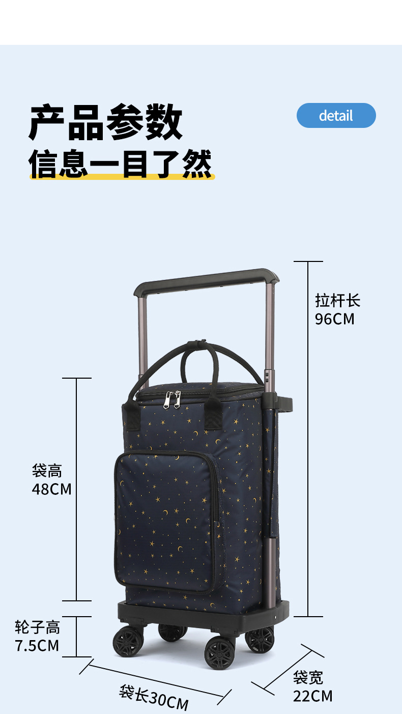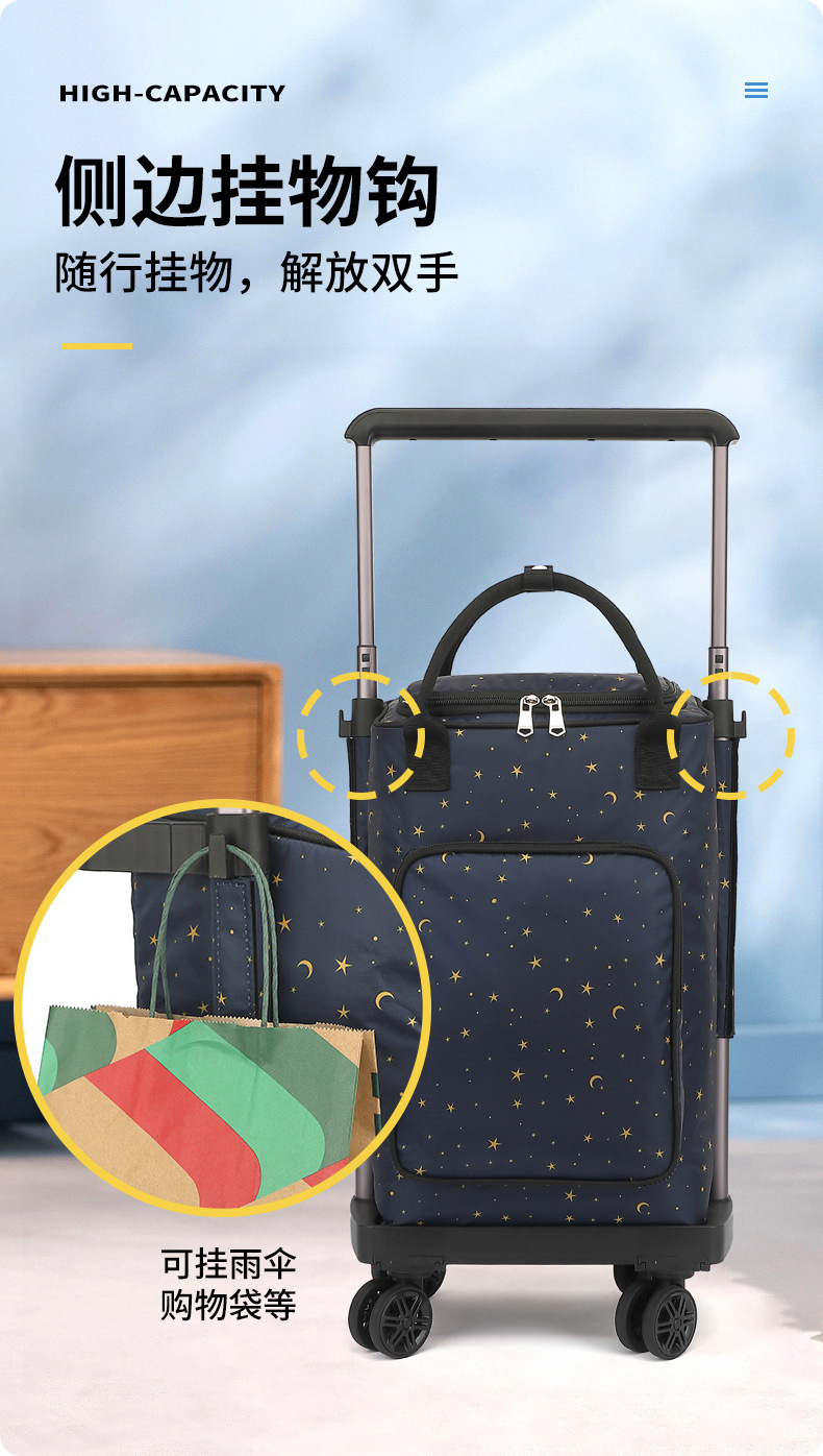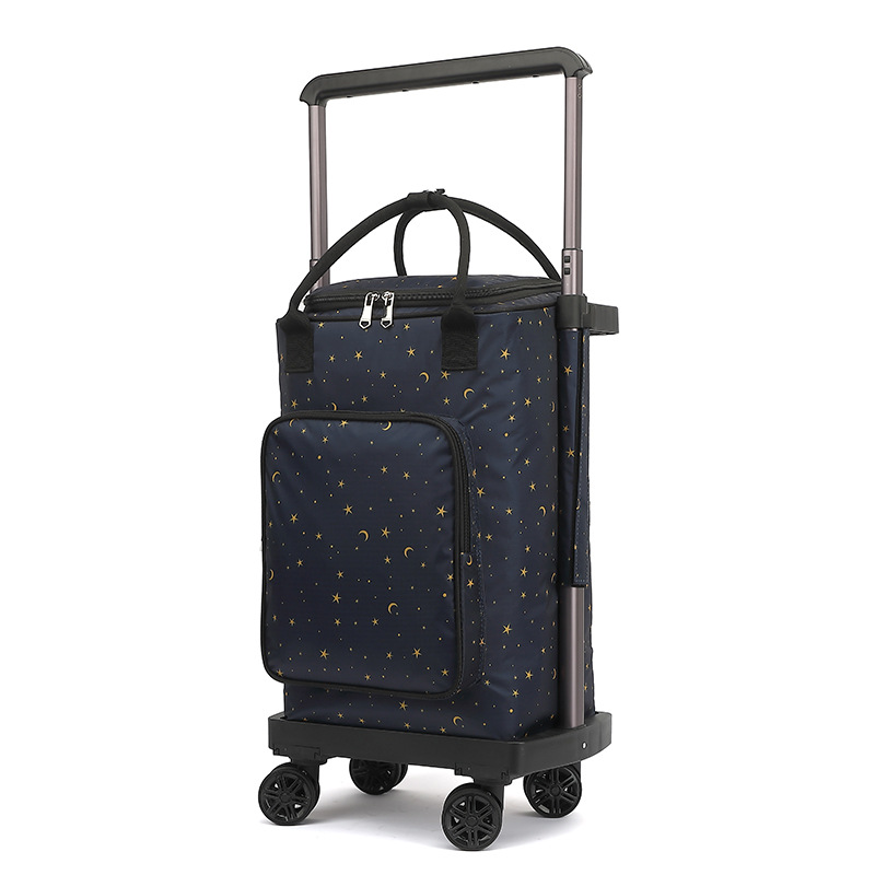새로운 국경 쇼핑 카트 작은 풀 카트 유니버설 휠 와이드 풀로드 트롤리 단열 가방 슈퍼마켓 쇼핑 라이트