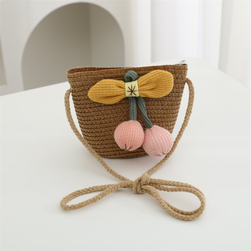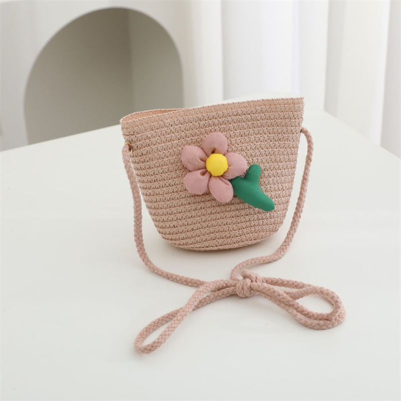 어린이 밀짚 가방 봄과 여름 소녀 크로스 바디 백 공주 한국식 귀여운 올매치 아기 소녀 동전 지갑 해변스토어 가기