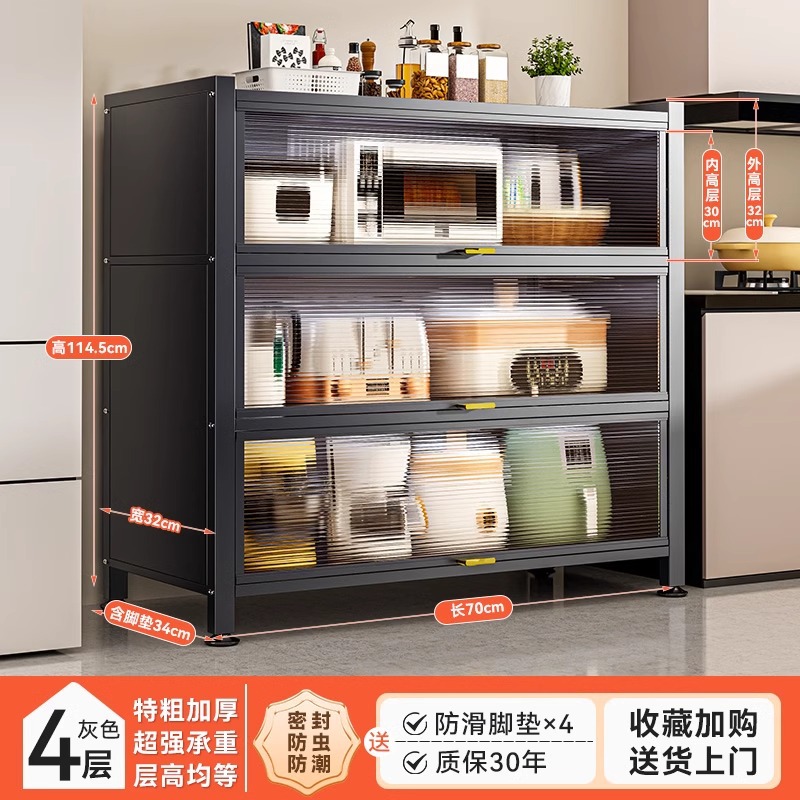 주방 보관 랙 도어 방진 보관 캐비닛이있는 전자 레인지 가정용 다기능 캐비닛을위한 바닥에 서있는 다층 보관 캐비닛
