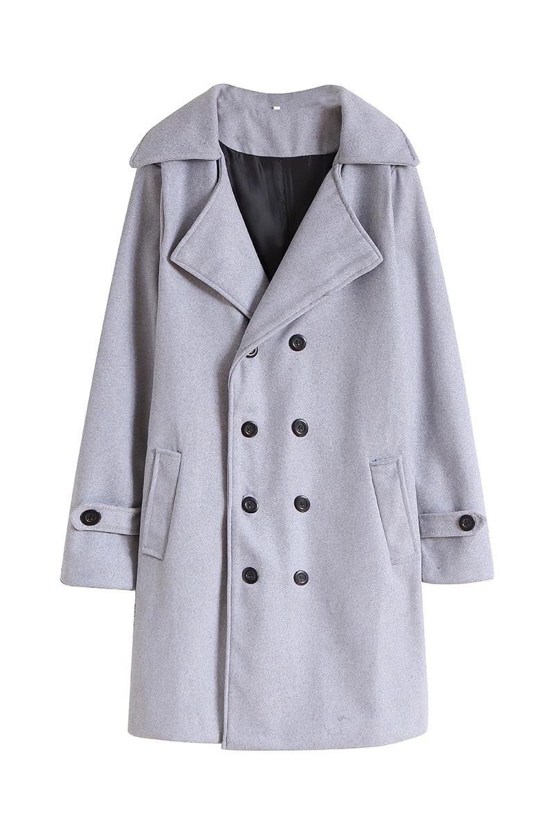 국경 간 대외 무역 유럽과 미국 남성 패션 단색 모직 코트 한국 더블 브레스트 긴 모직 트렌치 코트