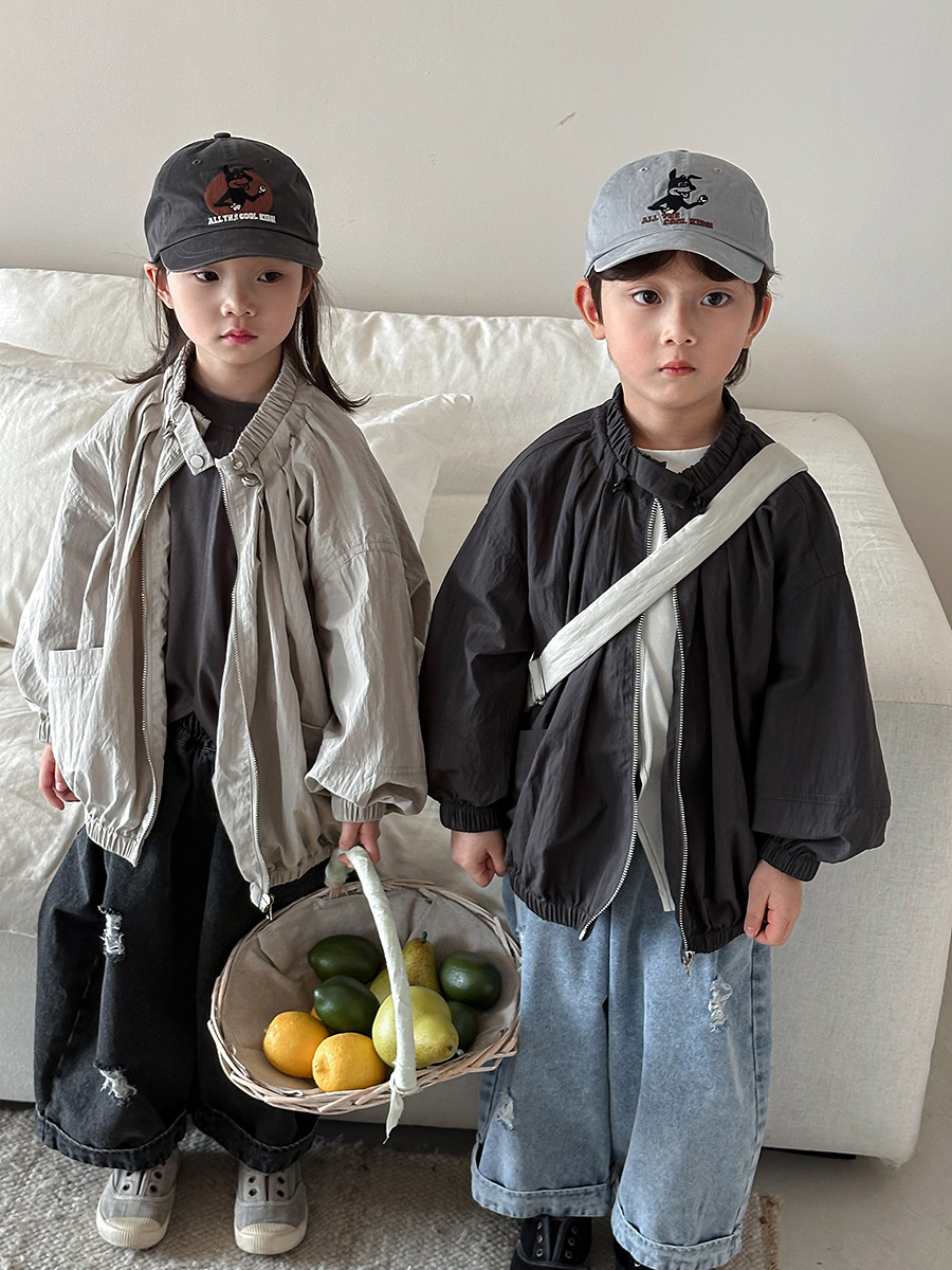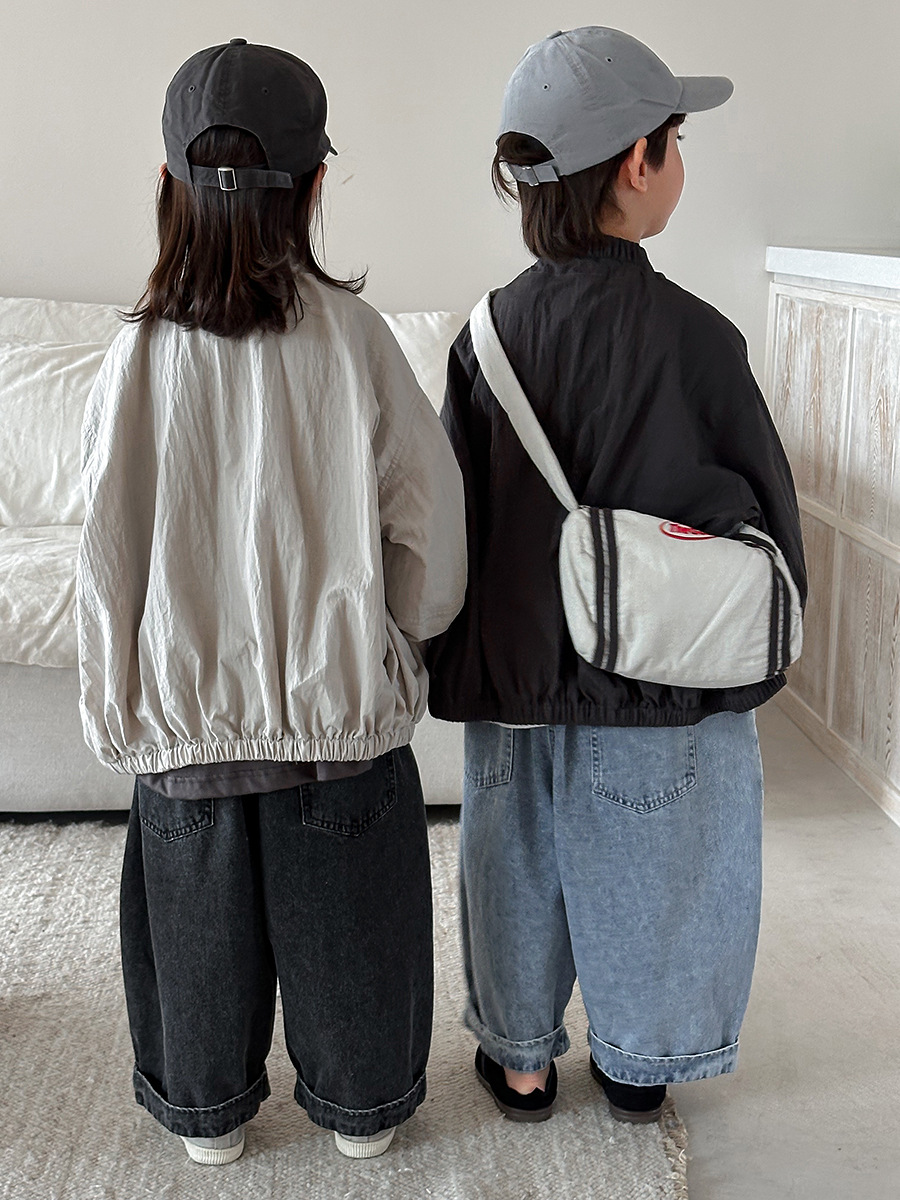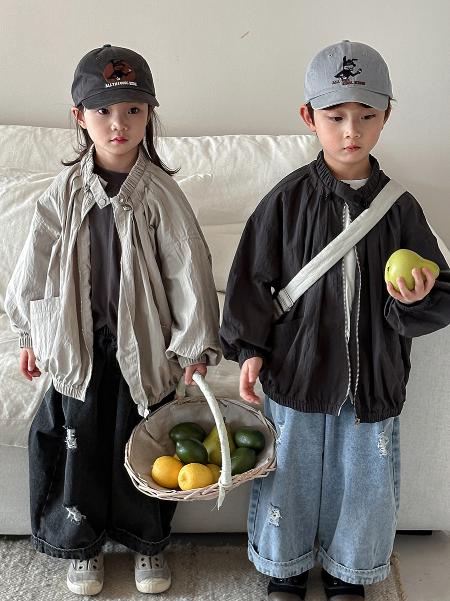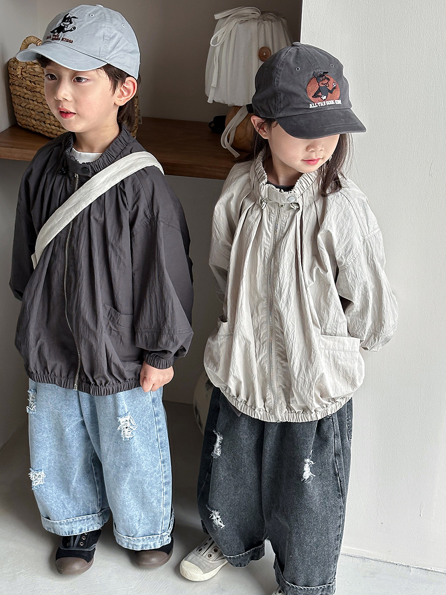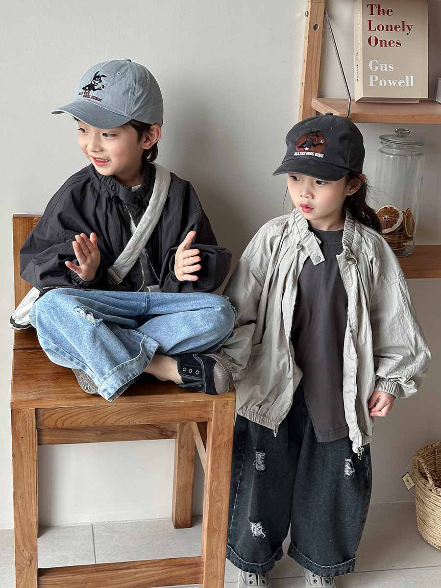 Jiaye Children's Products 2025 남성과 여성을 위한 새로운 가을 찢어진 청바지, 느슨한 올드 와이드 레그 팬츠스토어 가기