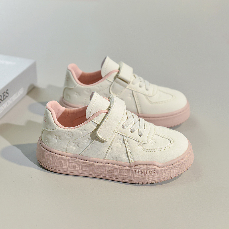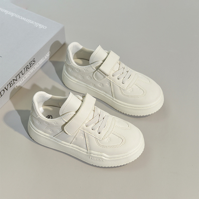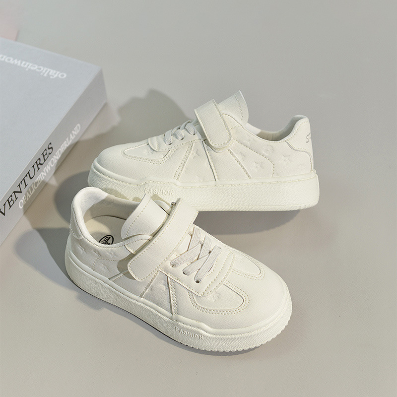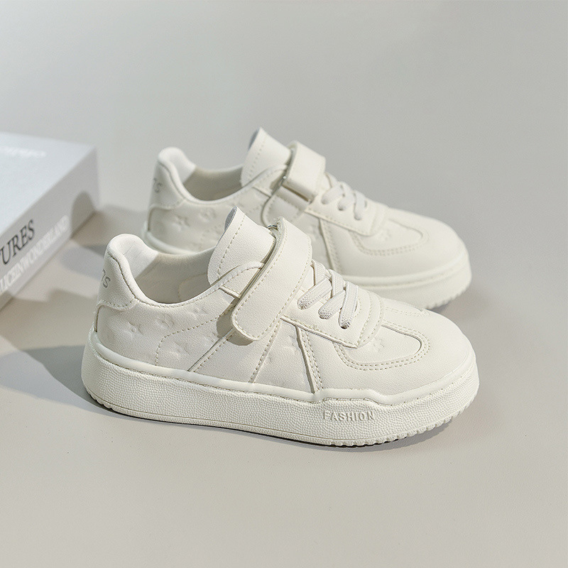 왁스 비비 스타 새해 슈퍼 섬유 가죽 소년 및 소녀 운동화 어린이 캐주얼 신발 벨크로 소프트 솔 화이트 신발스토어 가기