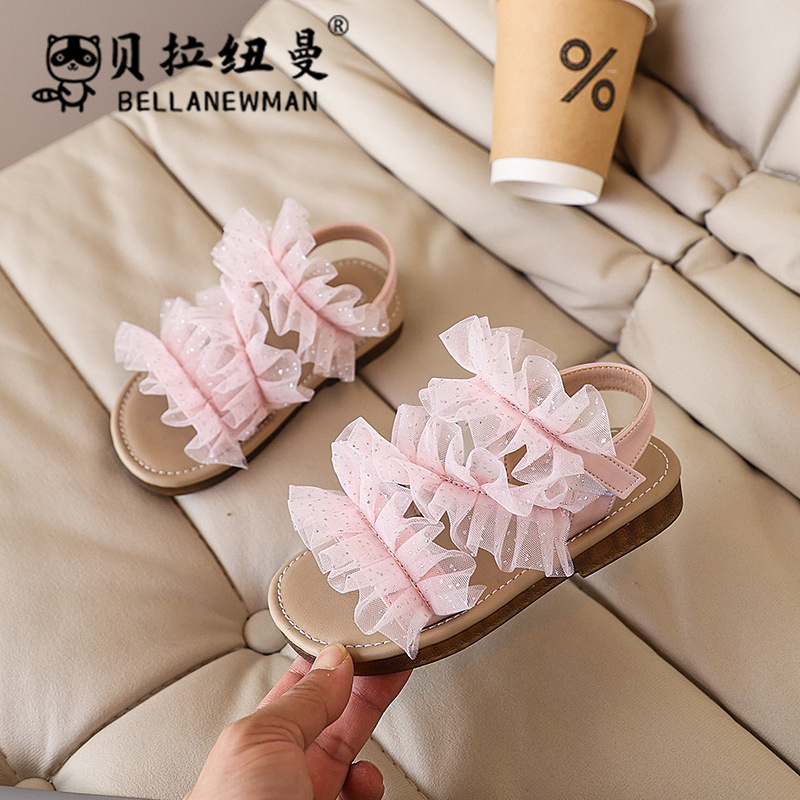 SHEIN 핫 메쉬 소녀 공주 신발 2025 여름 새로운 어린이 소프트 솔 샌들 플랫 비치 신발