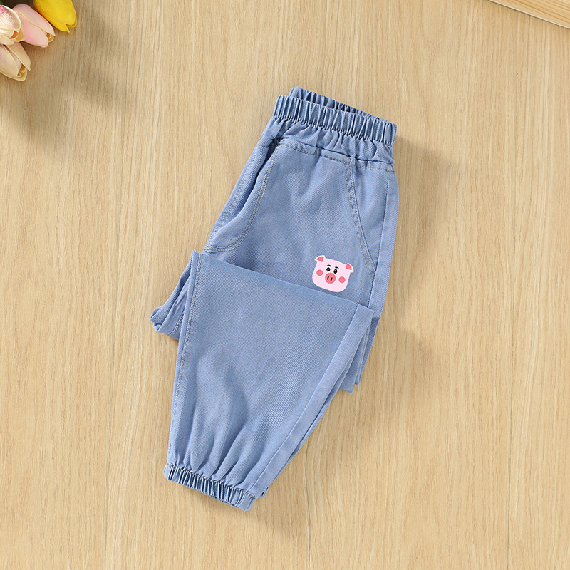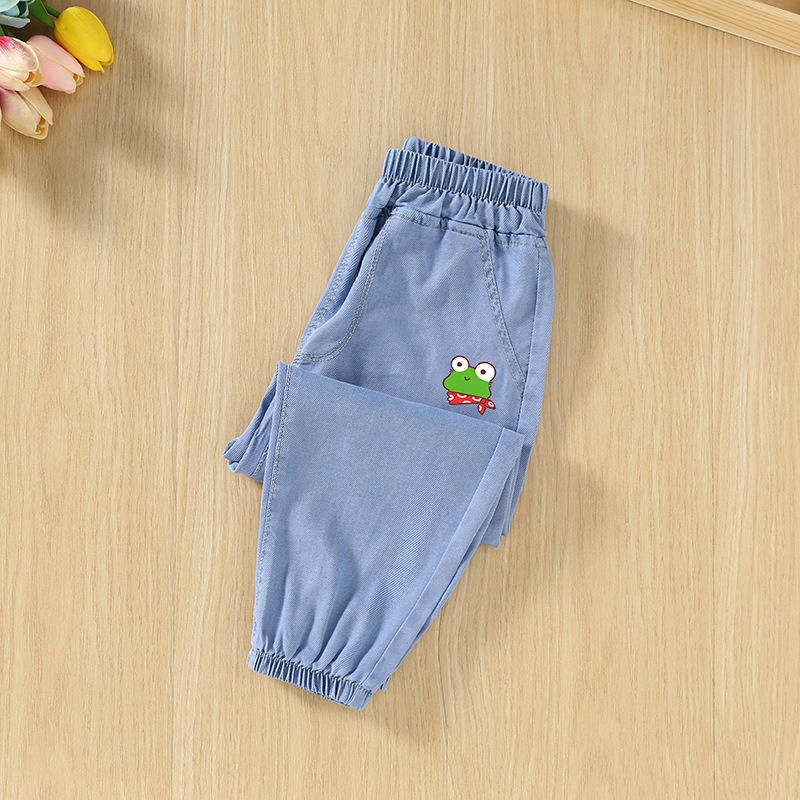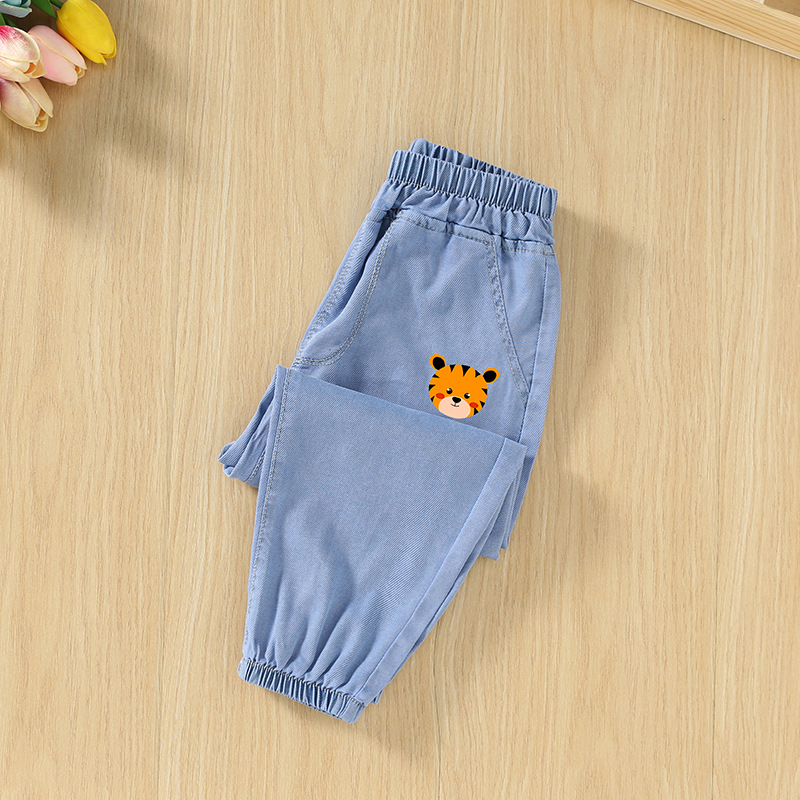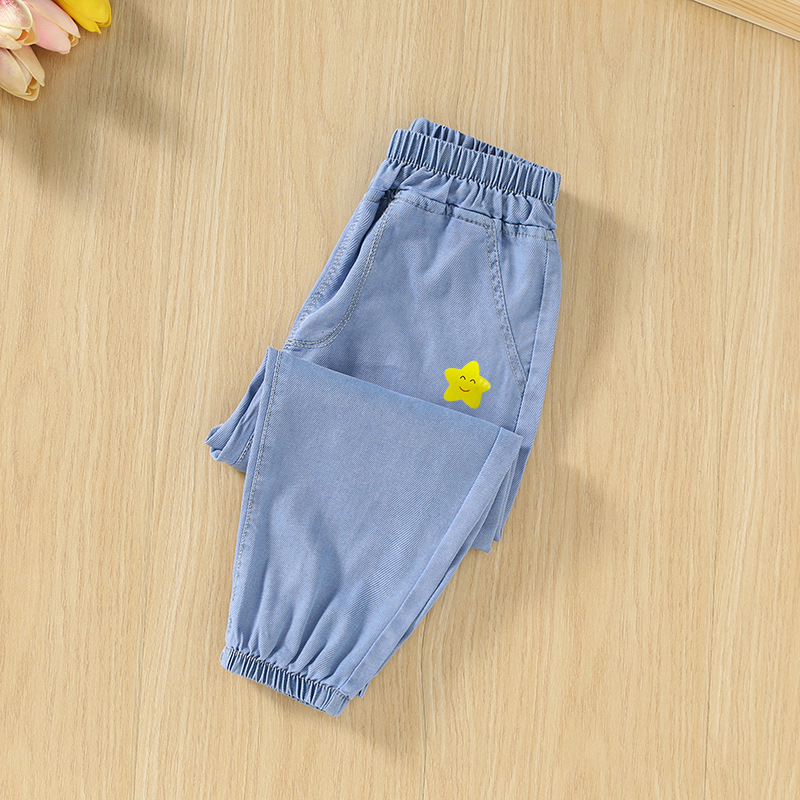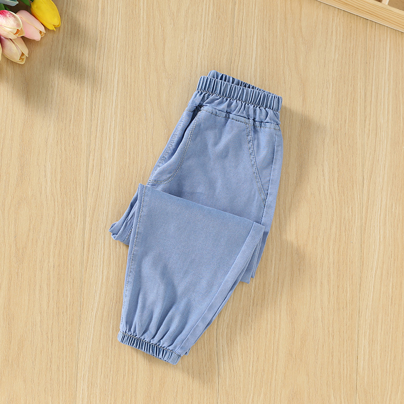 남녀 아동용 모기 방지 바지 여름 얇은 모델 2025 신상 어린이 봄 텐셀 데님 중대형 아동 여름 바지스토어 가기