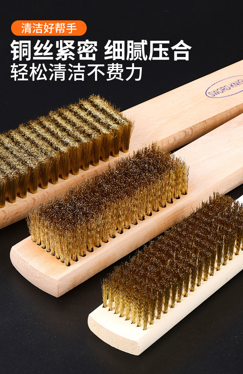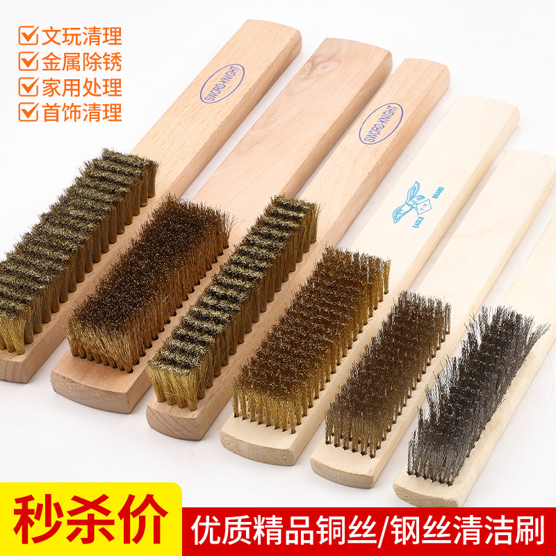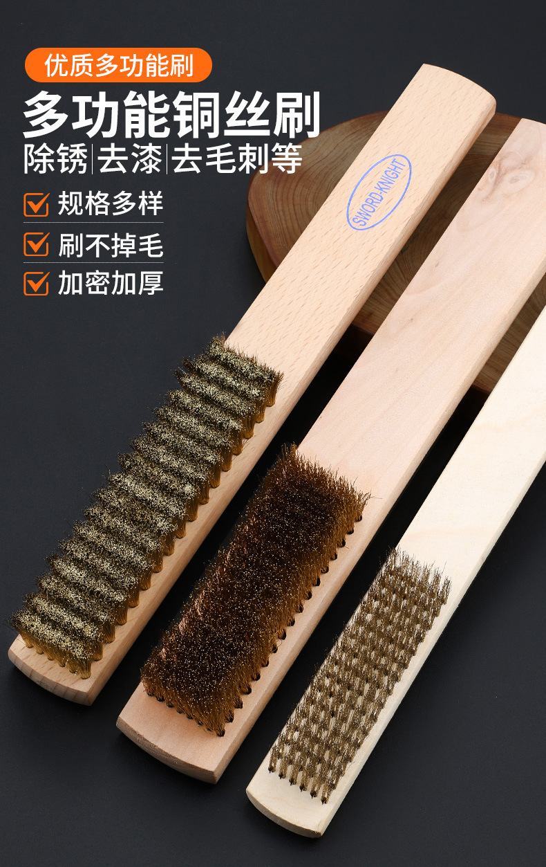 다기능 고품질 나무 손잡이 구리 와이어 브러시 암호화 브러시 연마 청소 디버링 브러시 두껍게하는 강모