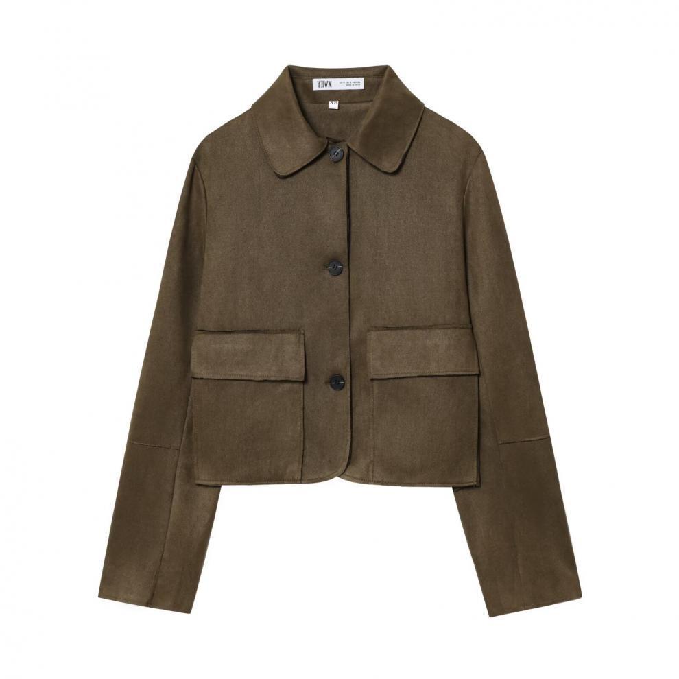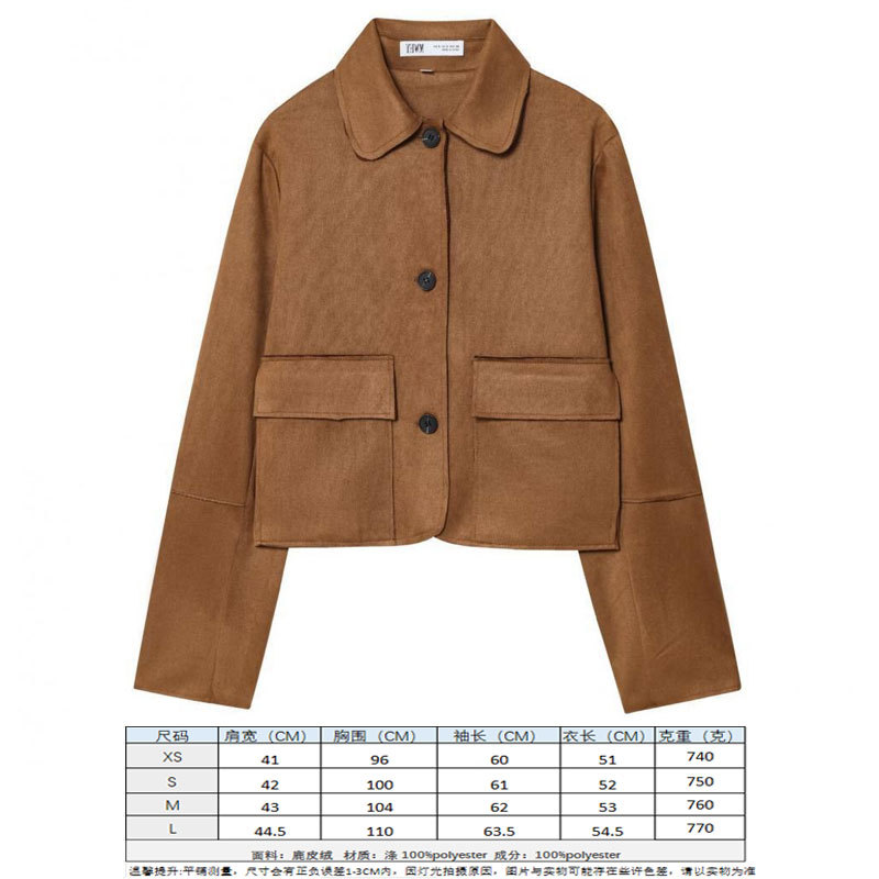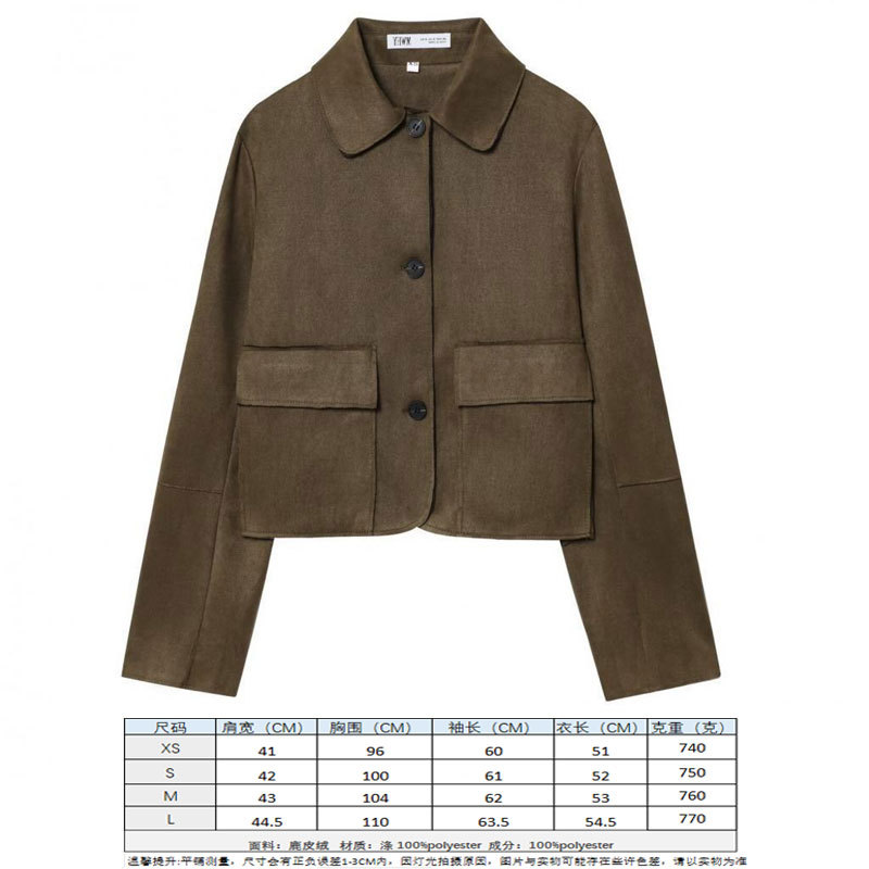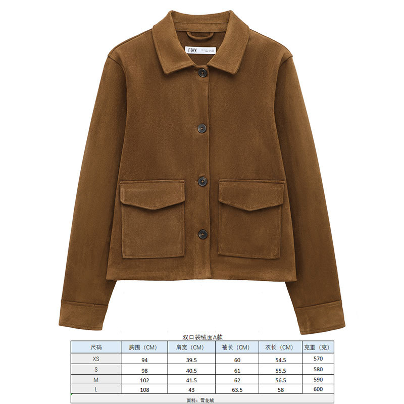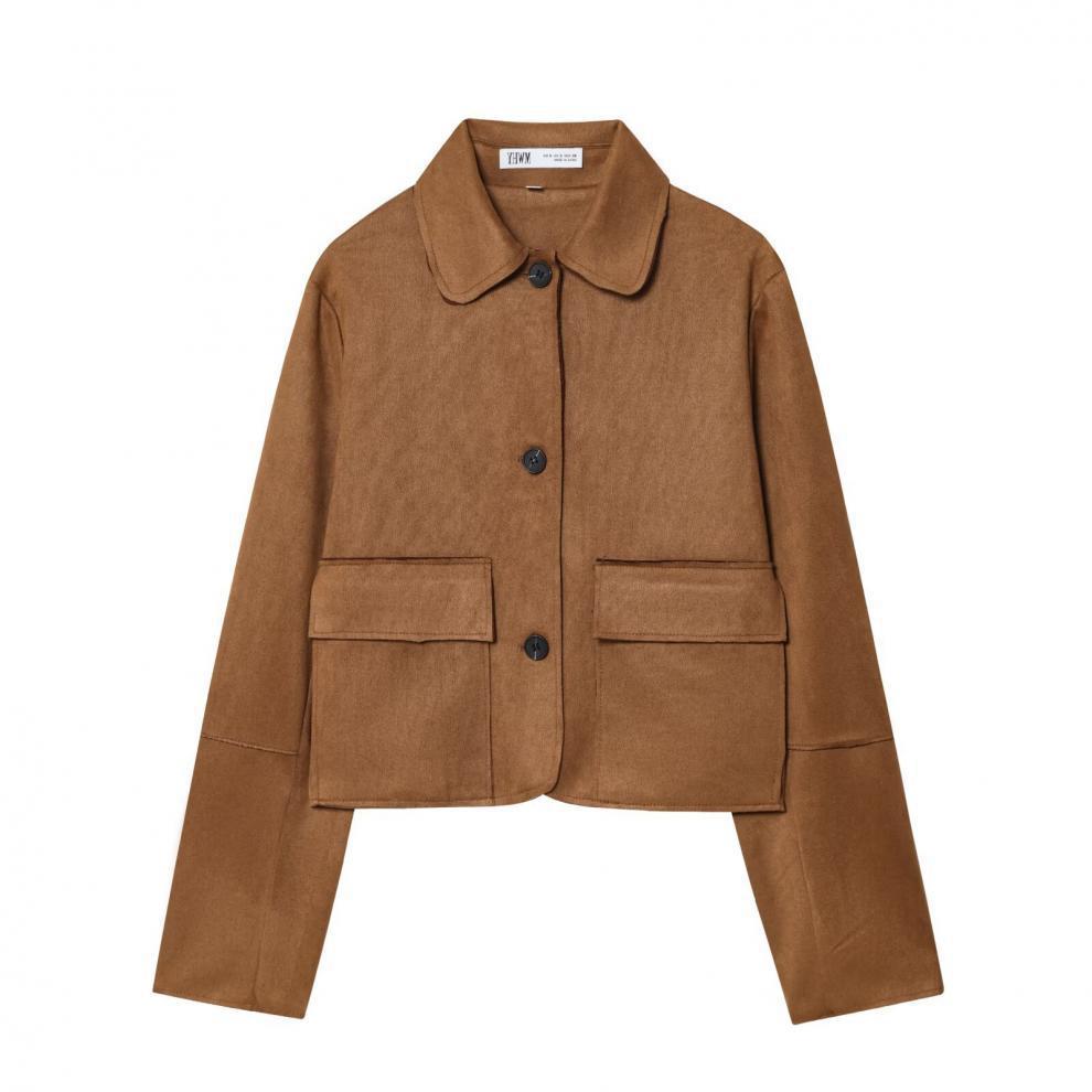 스웨이드 텍스처 효과 코트 2025 봄 유럽과 미국 여성의 싱글 브레스트 긴 소매 옷깃 포켓 크로스 보더 도매 재킷스토어 가기