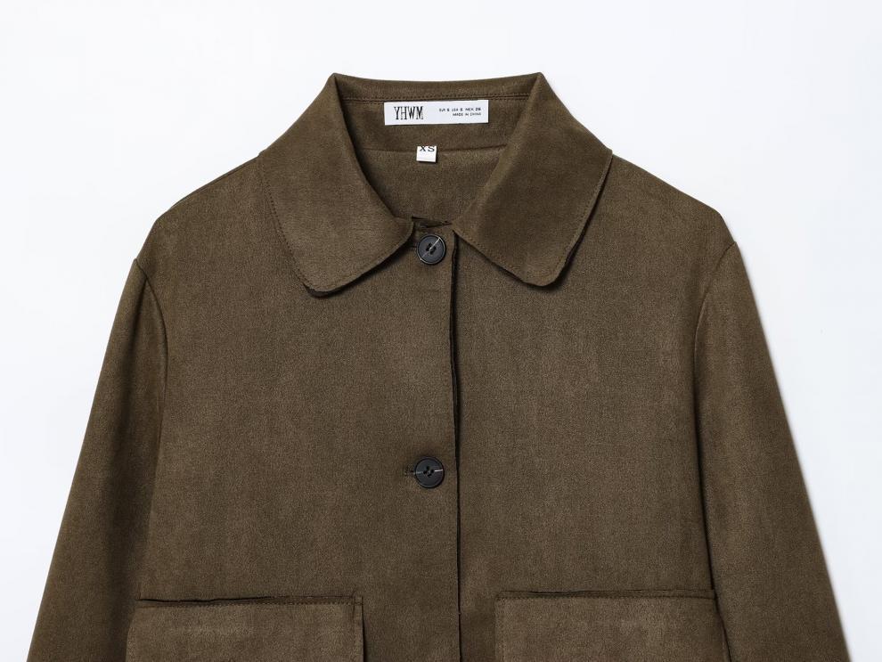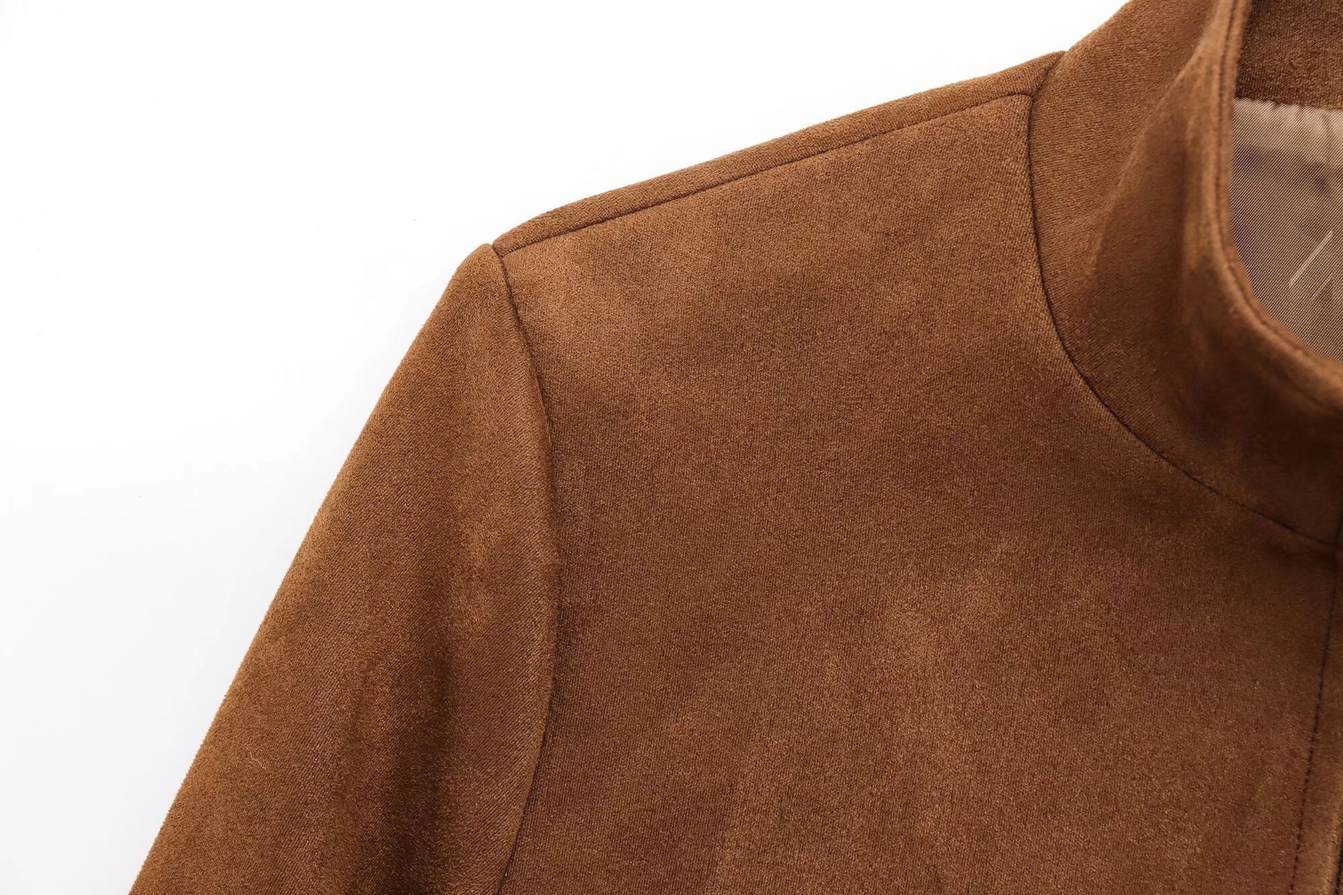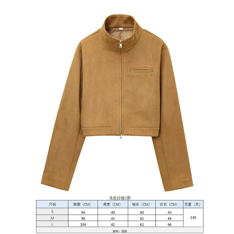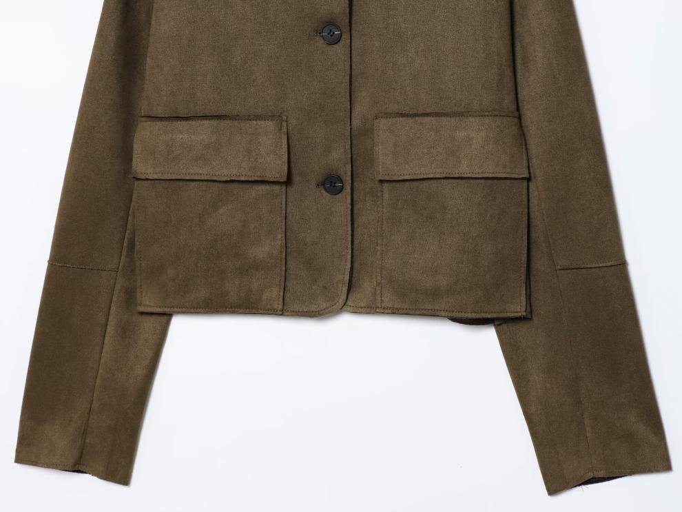 스웨이드 텍스처 효과 코트 2025 봄 유럽과 미국 여성의 싱글 브레스트 긴 소매 옷깃 포켓 크로스 보더 도매 재킷스토어 가기