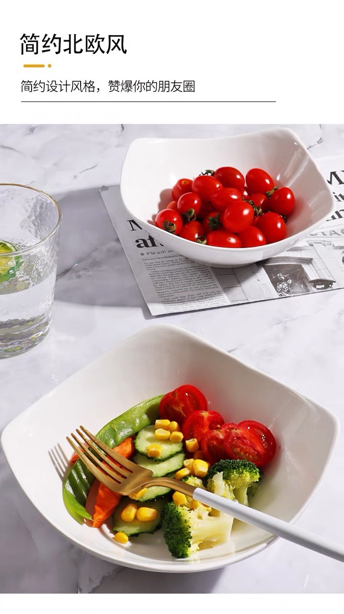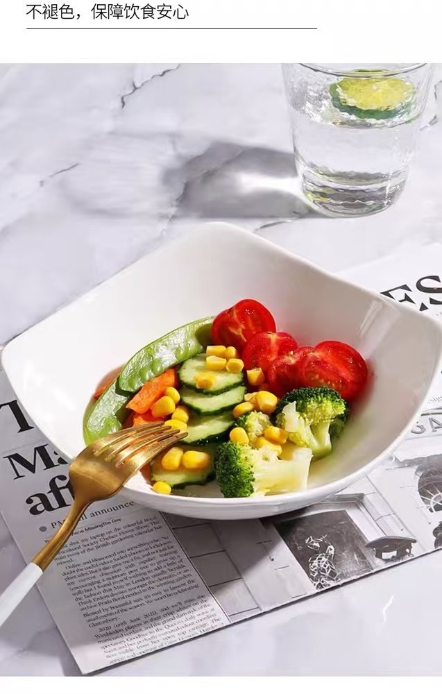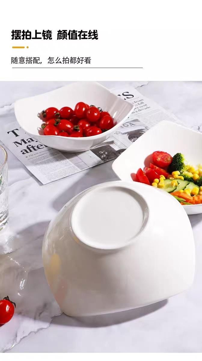 순수한 흰색 4 코너 가정 모방 세라믹 그릇 샐러드 그릇 수프 플레이트 창조적 인 접시 간단한 사이버 축하 접시 수프 그릇