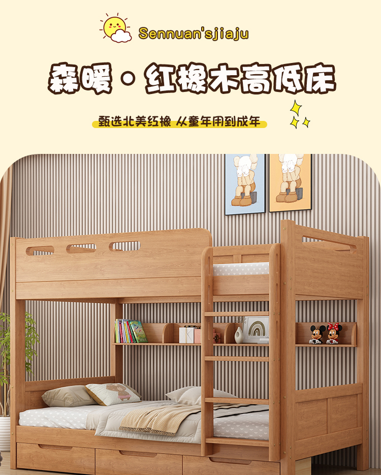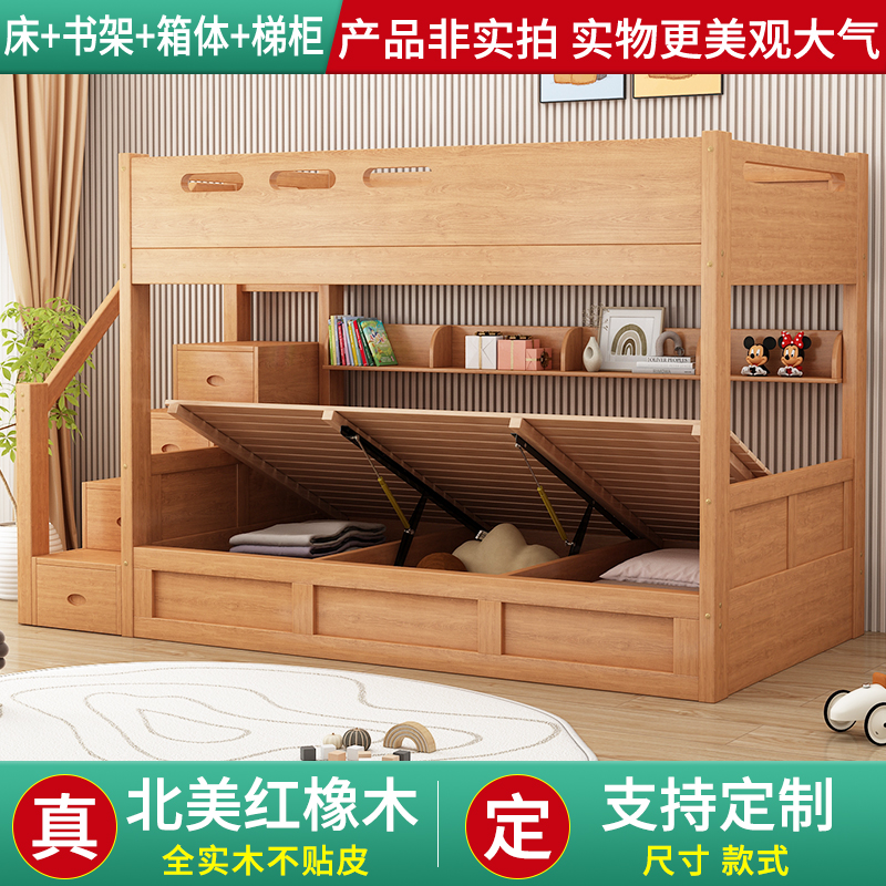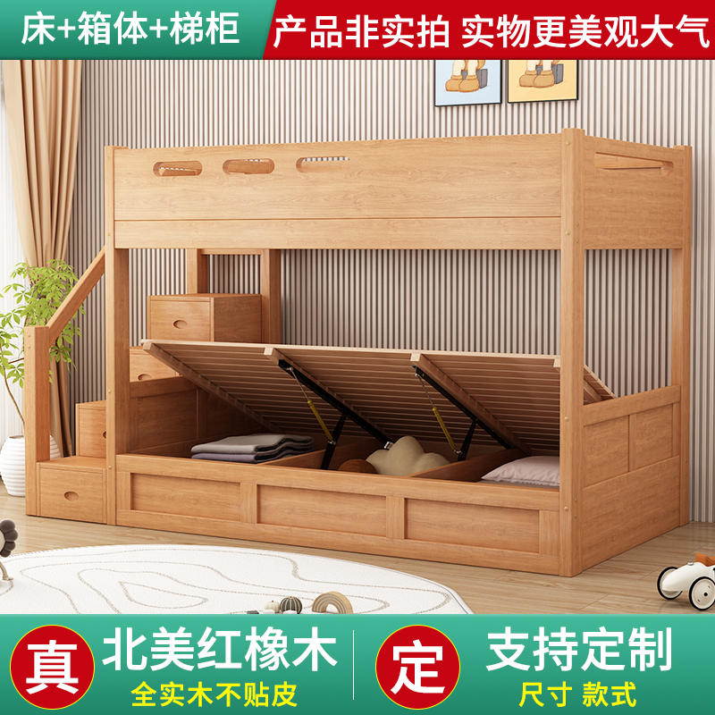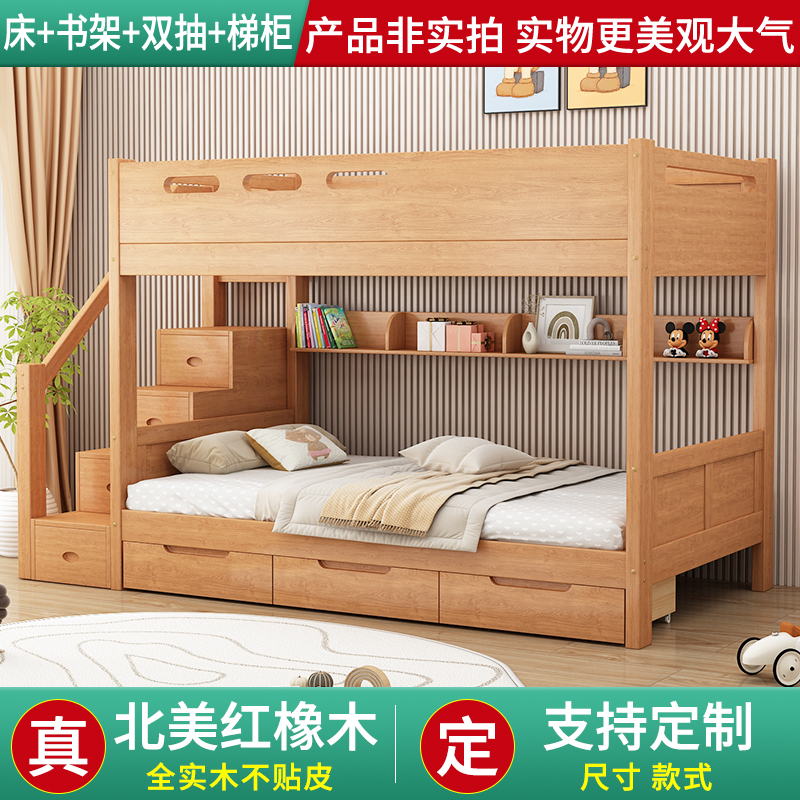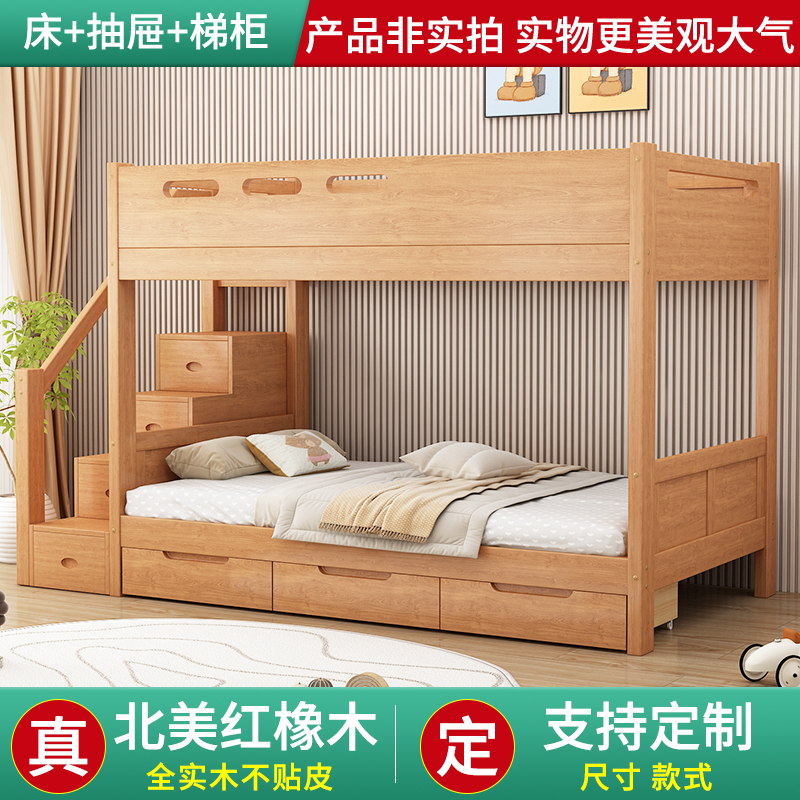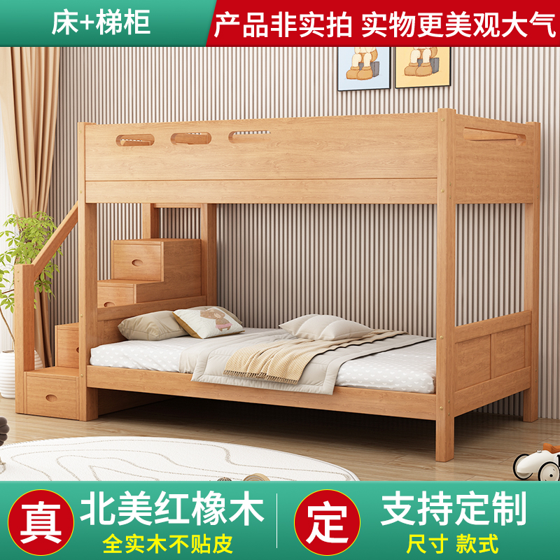 Z & 풀 솔리드 우드 침대 이층 침대 평행한 높고 낮은 침대 작은 아파트 같은 폭 어머니 침대 나무 침대 어린이 침대스토어 가기