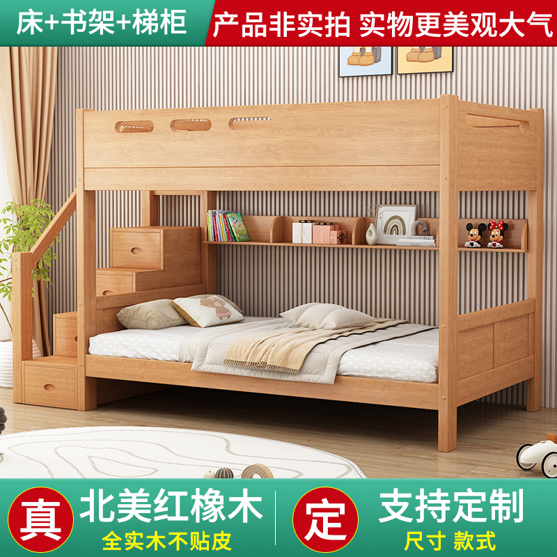 Z & 풀 솔리드 우드 침대 이층 침대 평행한 높고 낮은 침대 작은 아파트 같은 폭 어머니 침대 나무 침대 어린이 침대