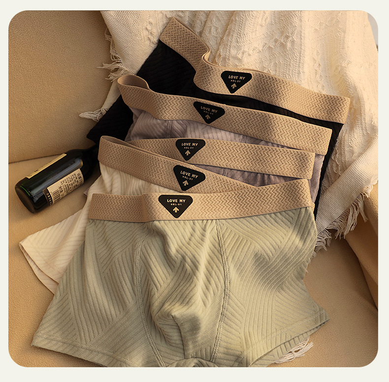 새로운 남성 속옷, 단색, 맞춤형, 트렌디한 신축성 있는 바지, 중간 허리 사각 팬티, 편안하고 통기성이 있으며 개별 포장됨