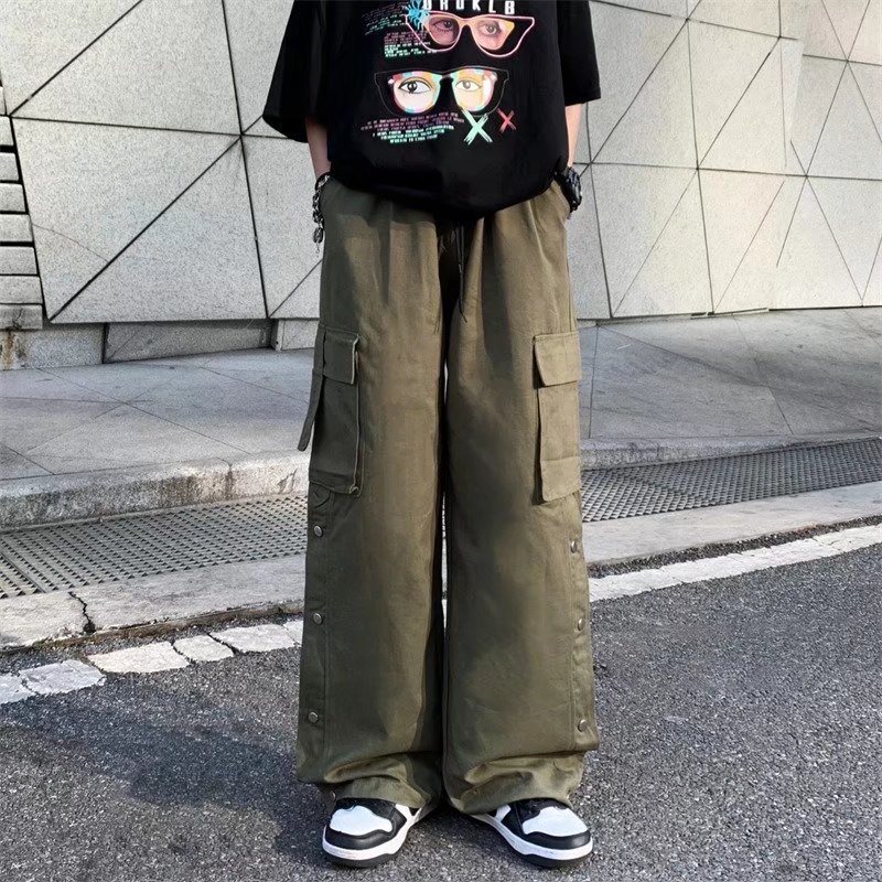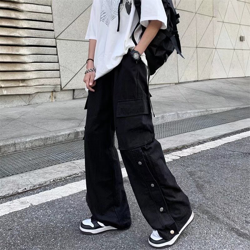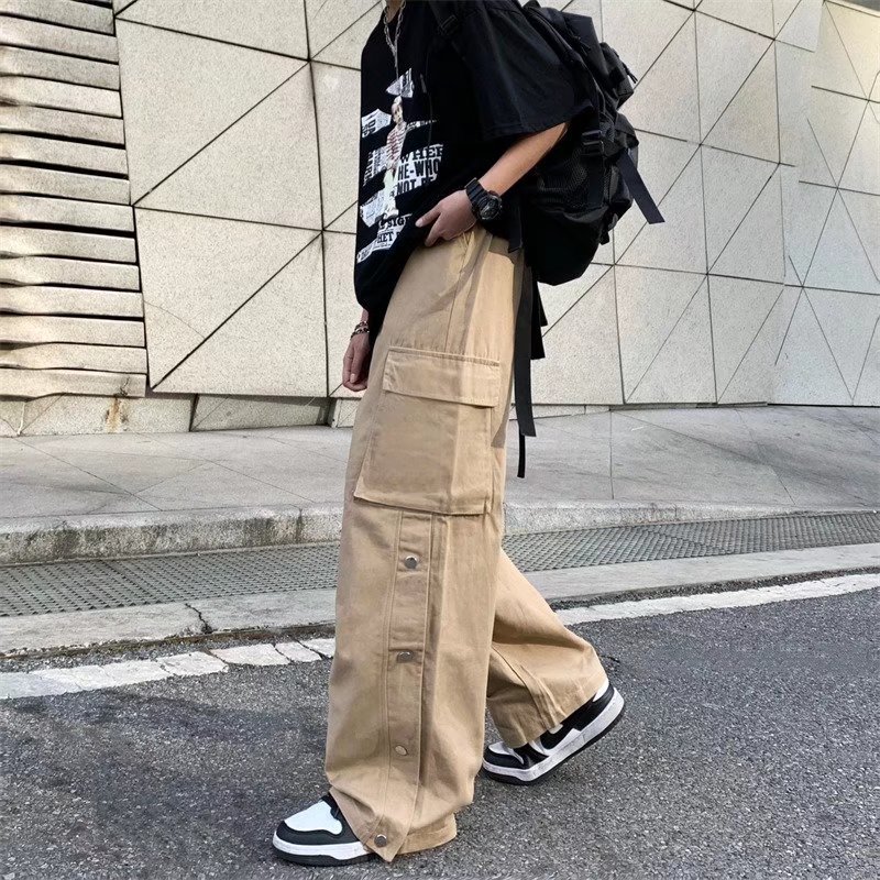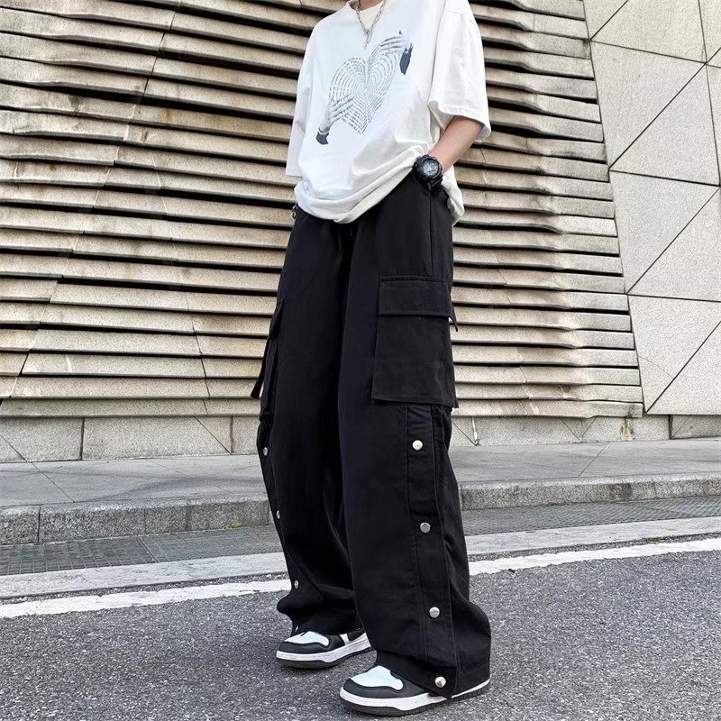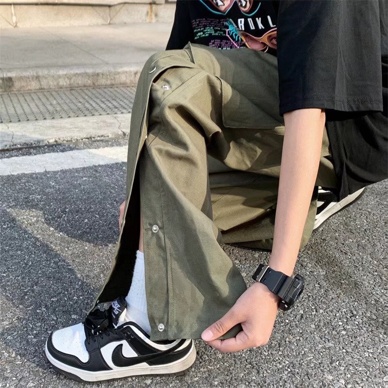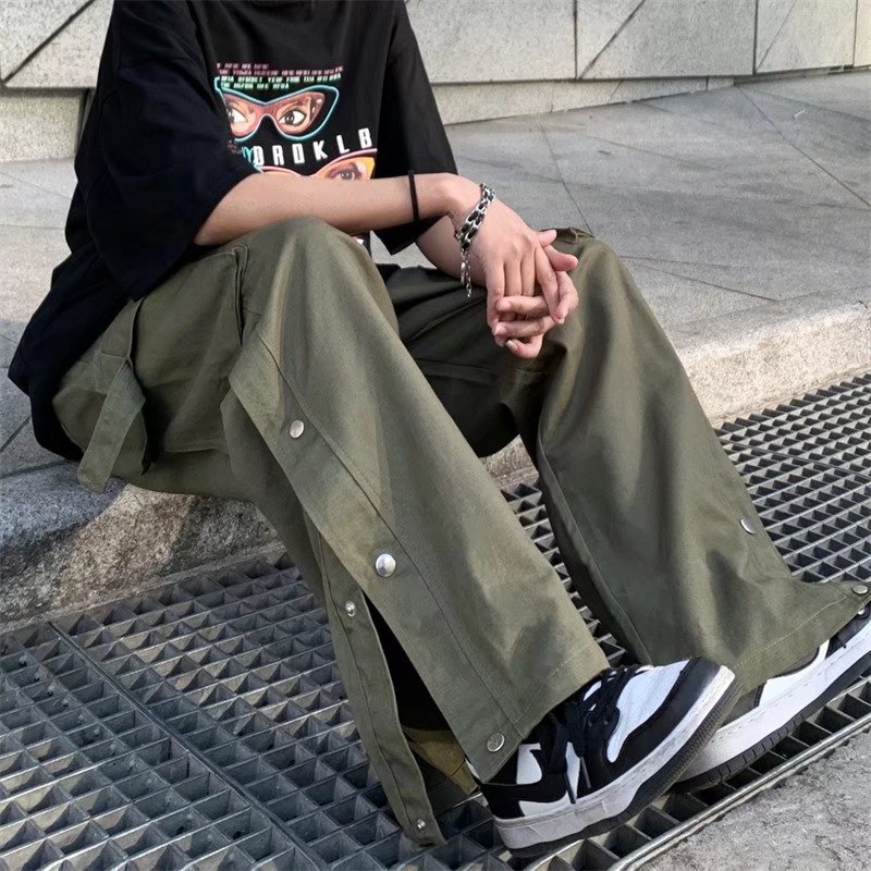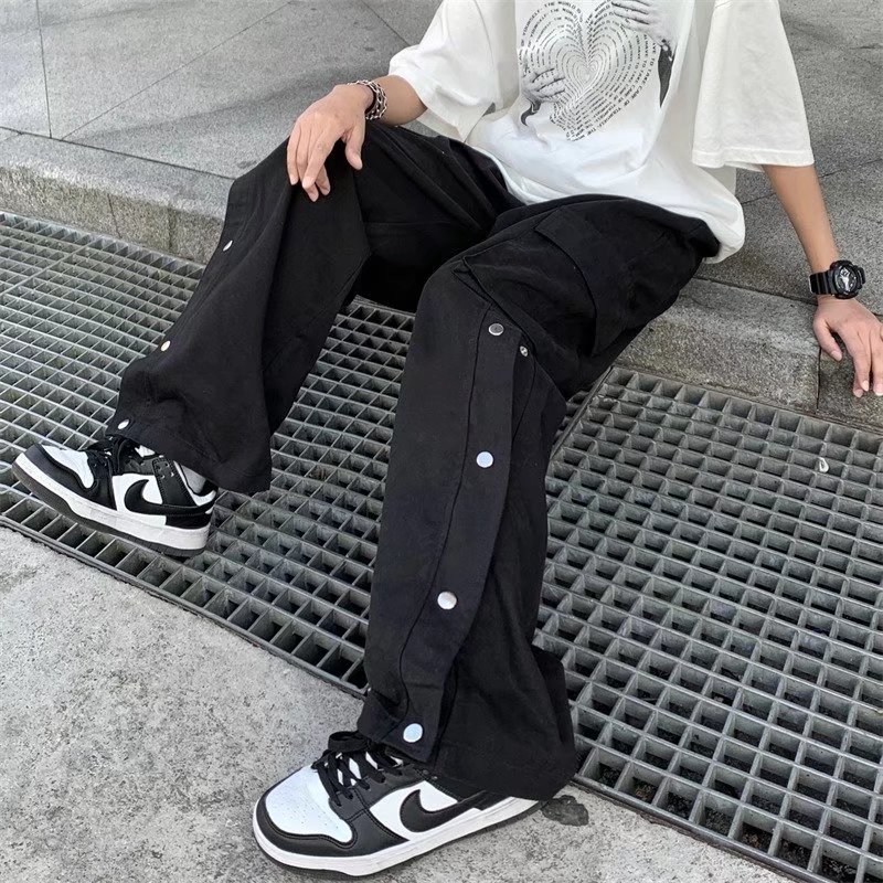 남성 바지 유럽과 미국의 하이 스트리트 패션 브랜드 스트레이트-레그 팬츠, 스트림 캐주얼 바지 슬림 핏 스트랩 인스타그램 스타일 잡힌 바지스토어 가기