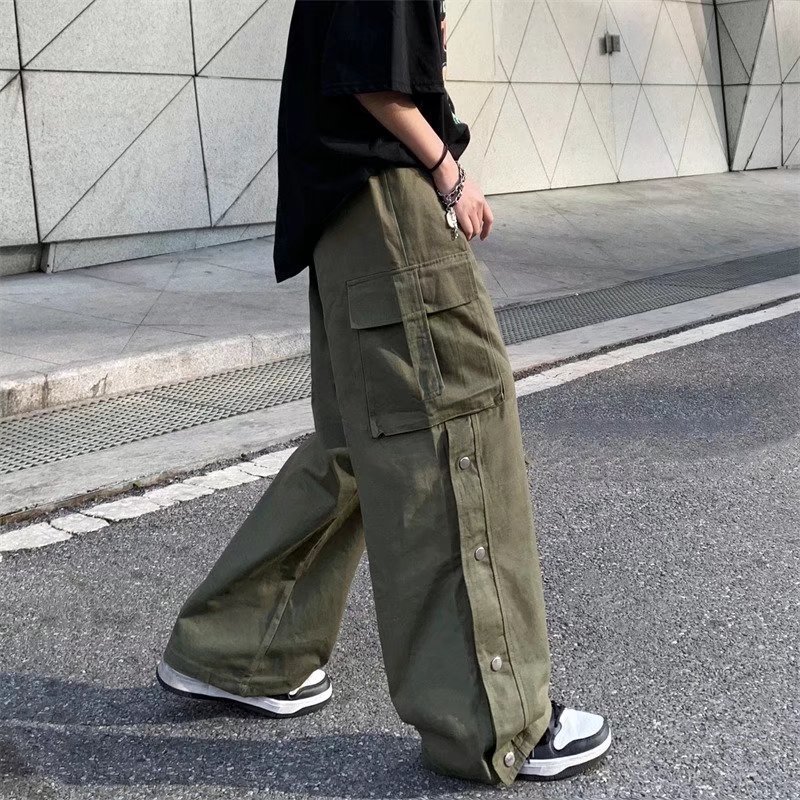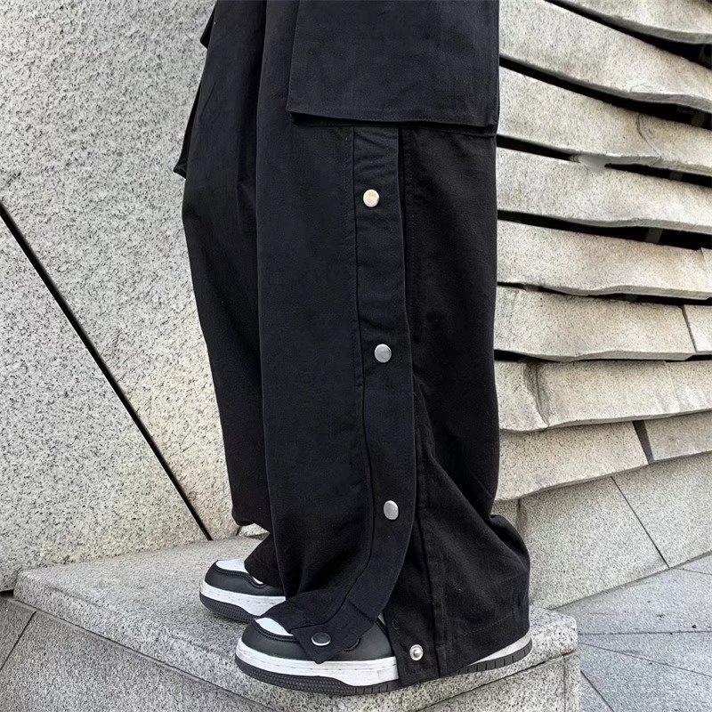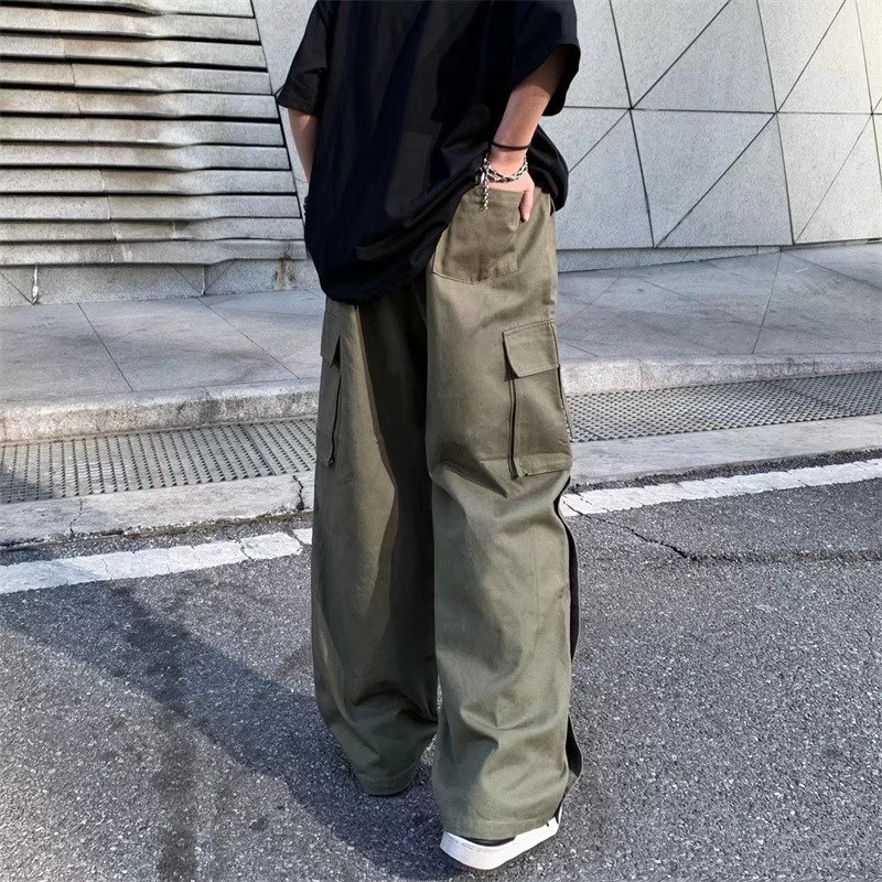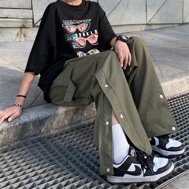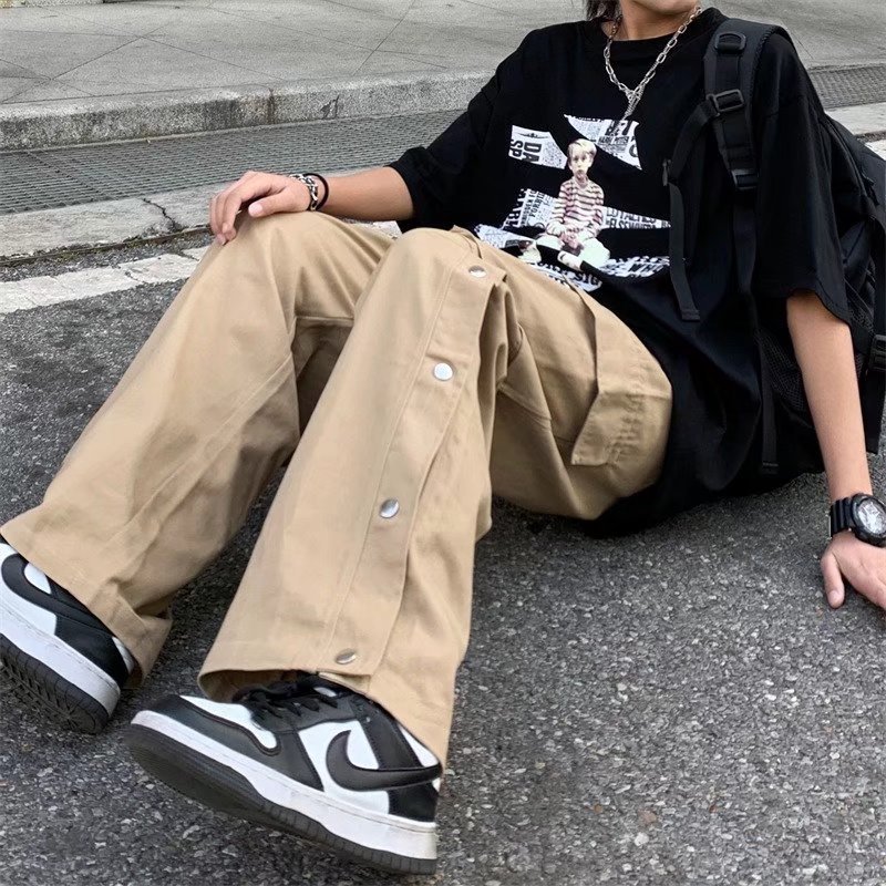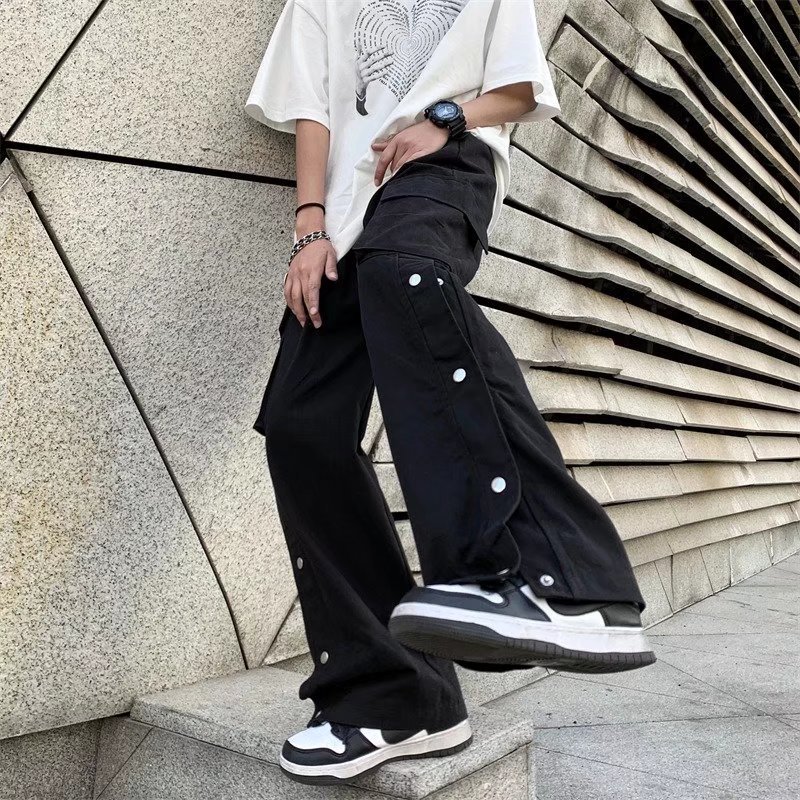 남성 바지 유럽과 미국의 하이 스트리트 패션 브랜드 스트레이트-레그 팬츠, 스트림 캐주얼 바지 슬림 핏 스트랩 인스타그램 스타일 잡힌 바지스토어 가기