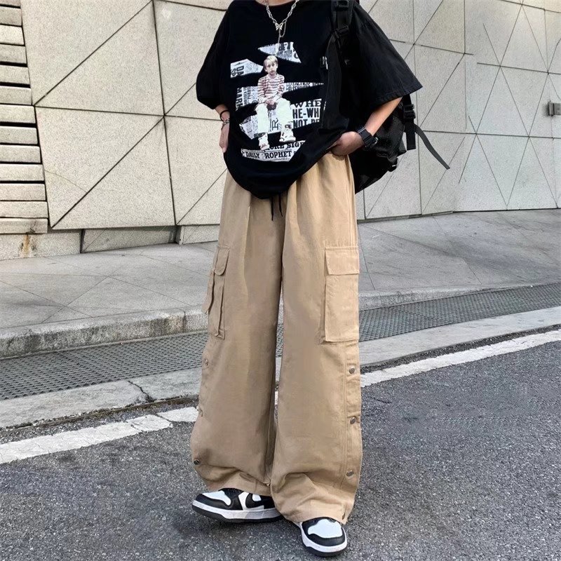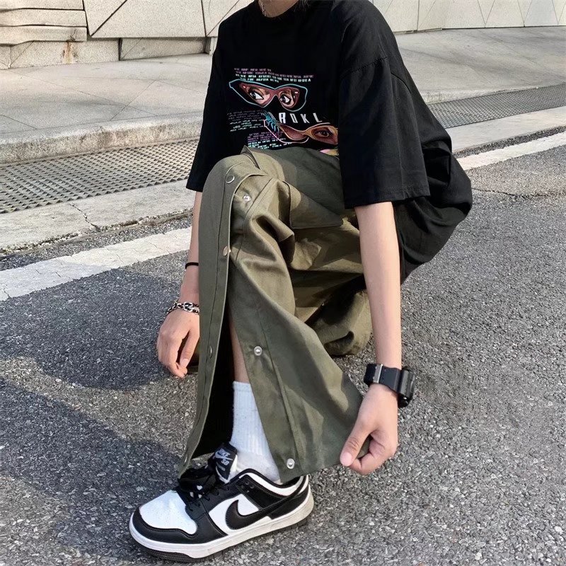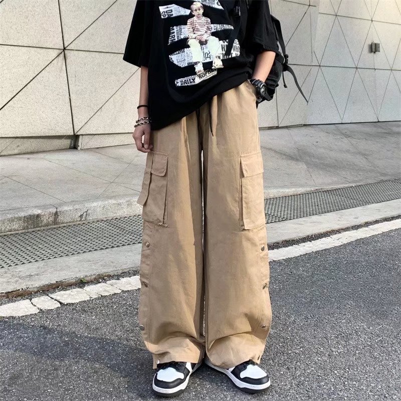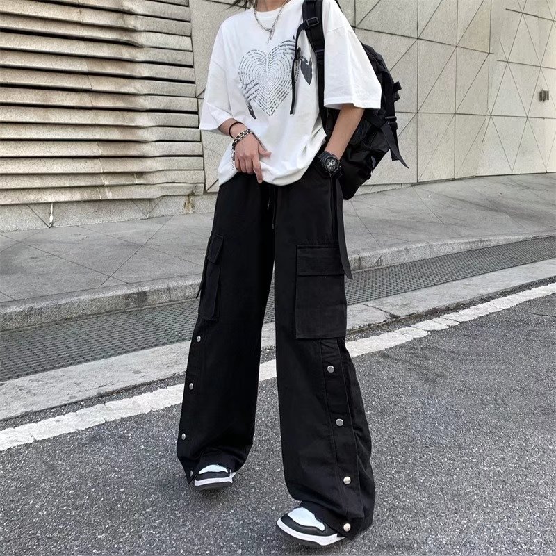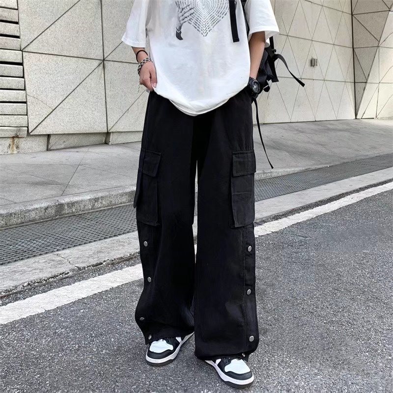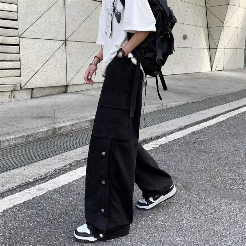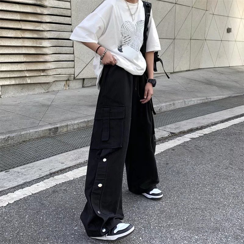 남성 바지 유럽과 미국의 하이 스트리트 패션 브랜드 스트레이트-레그 팬츠, 스트림 캐주얼 바지 슬림 핏 스트랩 인스타그램 스타일 잡힌 바지스토어 가기