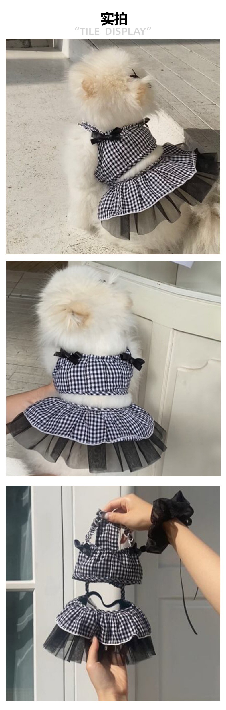 2025 새로운 중소 애완 동물 개 고양이 봄과 여름 옷 체크 무늬 원피스