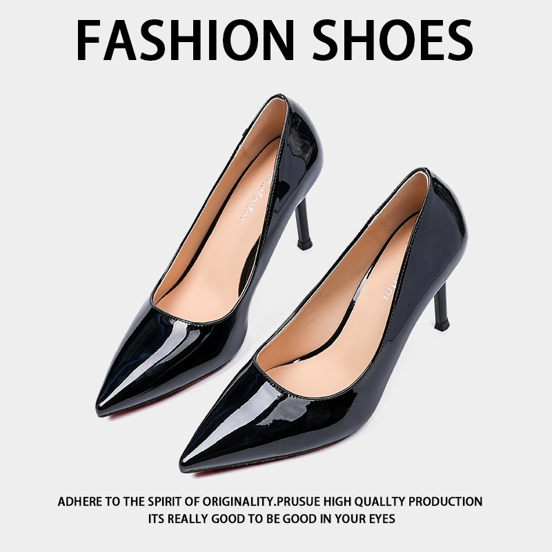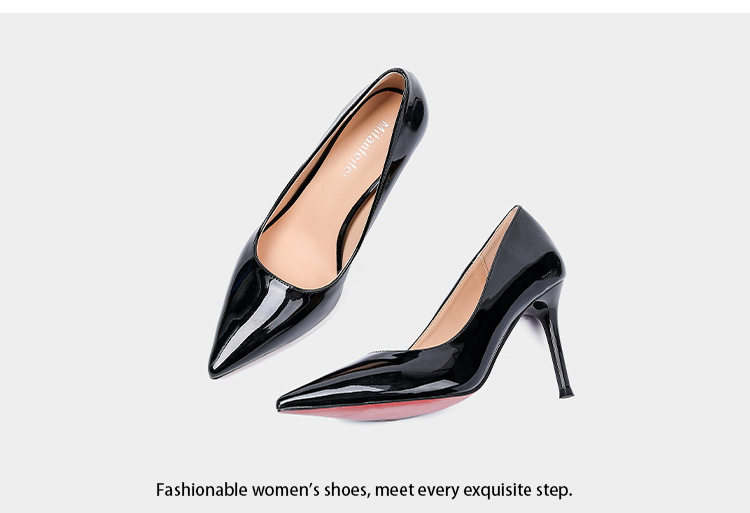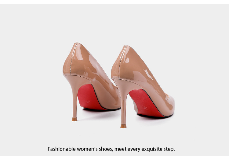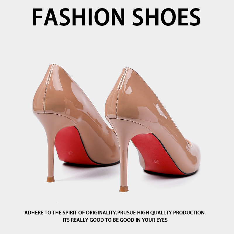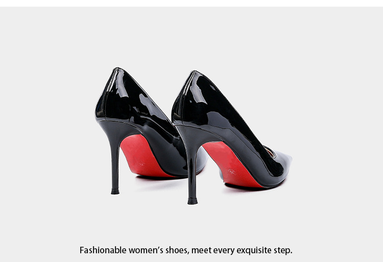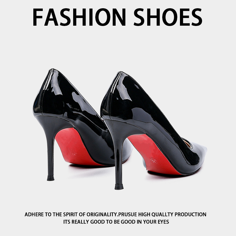 레드 바텀 하이힐 여성 2025 패션 로얄 언니의 조커 신발 블랙 우아한 특허 가죽 얕은 입 뾰족한 스틸레토 힐 신발스토어 가기