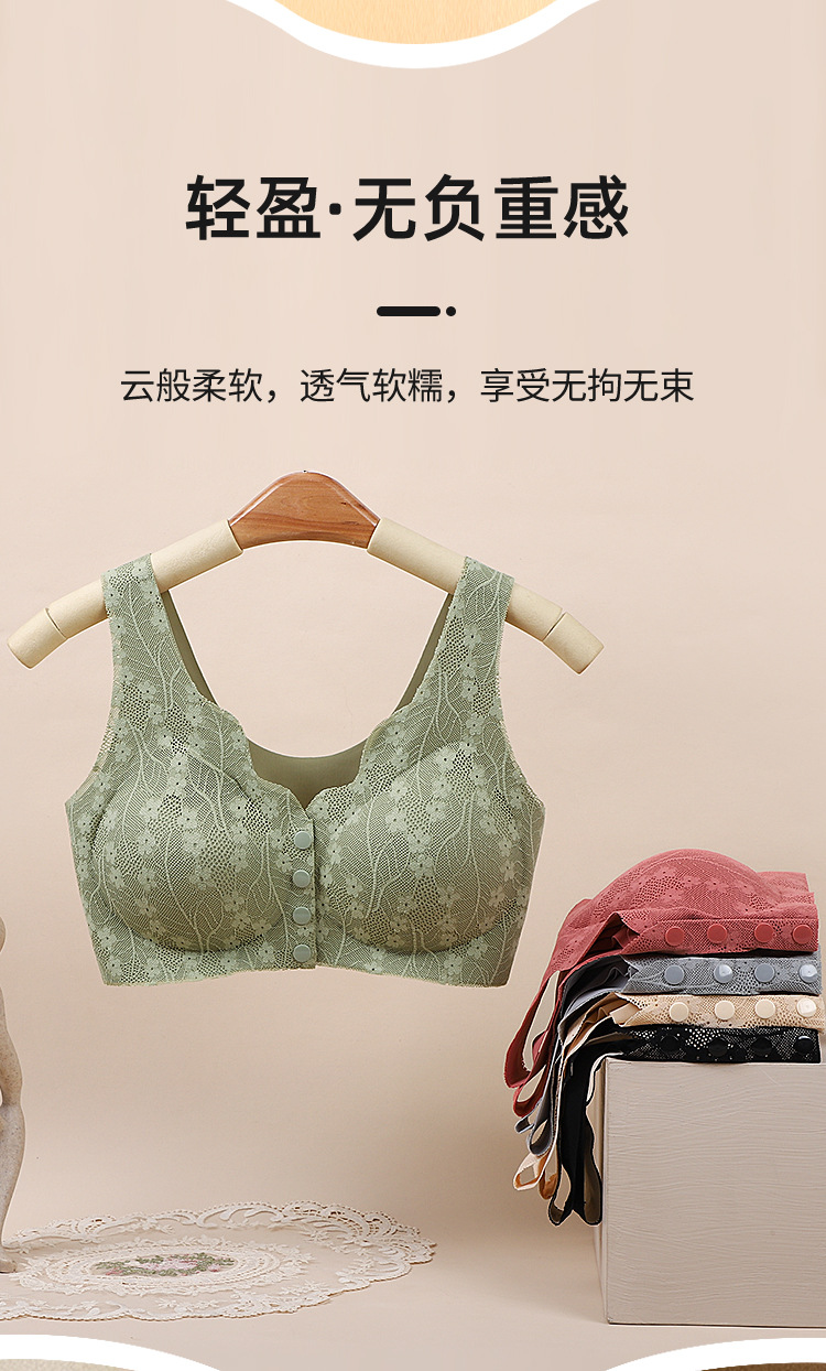 중년 및 노인 어머니를위한 프론트 오프닝 버클 에이지 프리 속옷 얇은 레이스 프리 브라 여성 간호 조끼