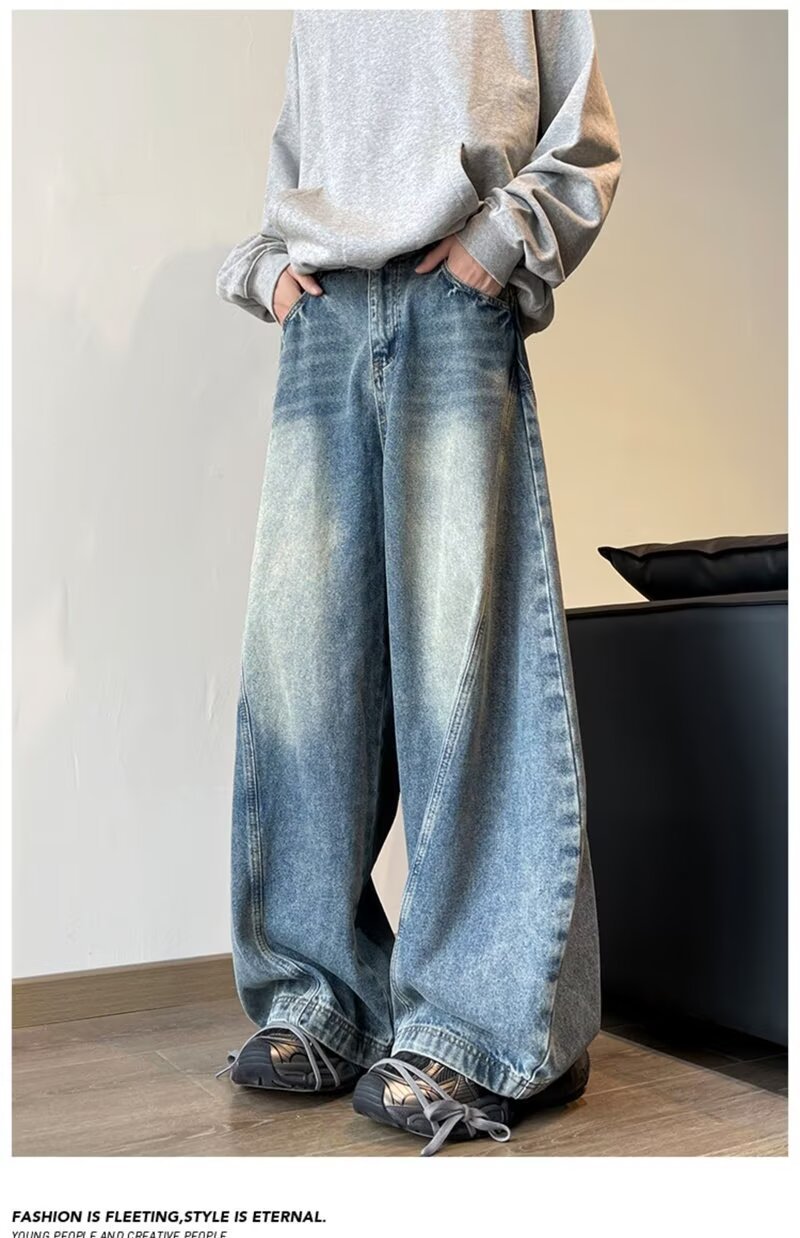 빈티지 성격 디자인 센스 2025 개성 편지 청바지 힙합은 트렌디 한 하이 스트리트 트렌디 한 바지스토어 가기