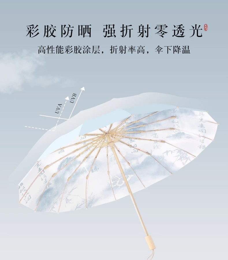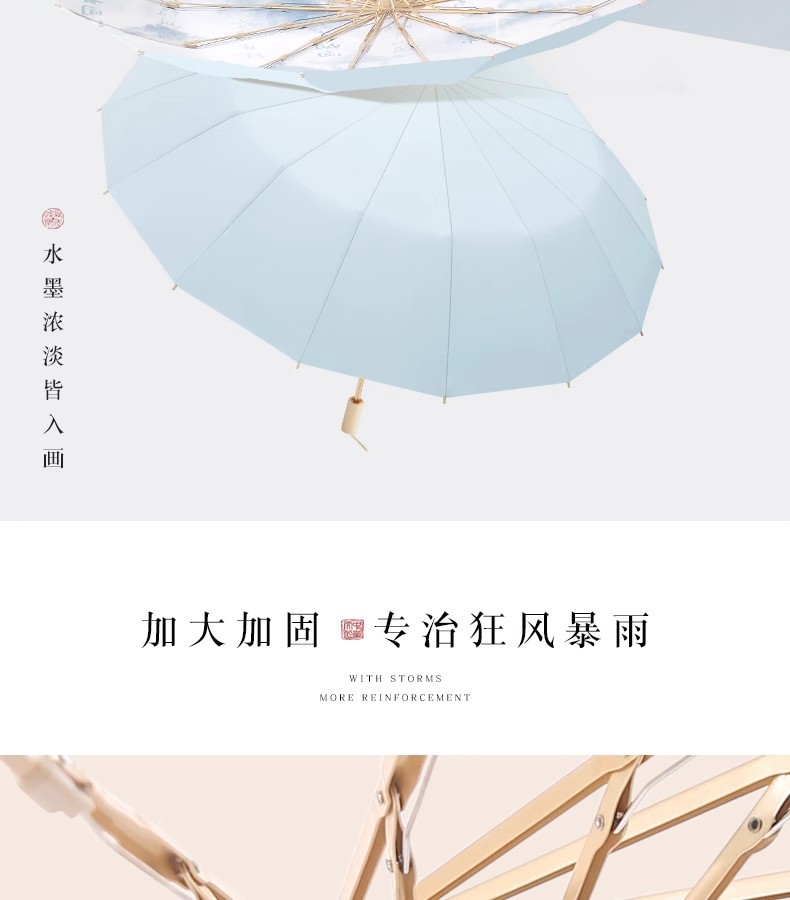 치유 16-뼈 우산 여성의 접히는 큰 바람 및 비 저항하는 이중 사용 태양 우산 선 스크린 UV-보호 차양스토어 가기