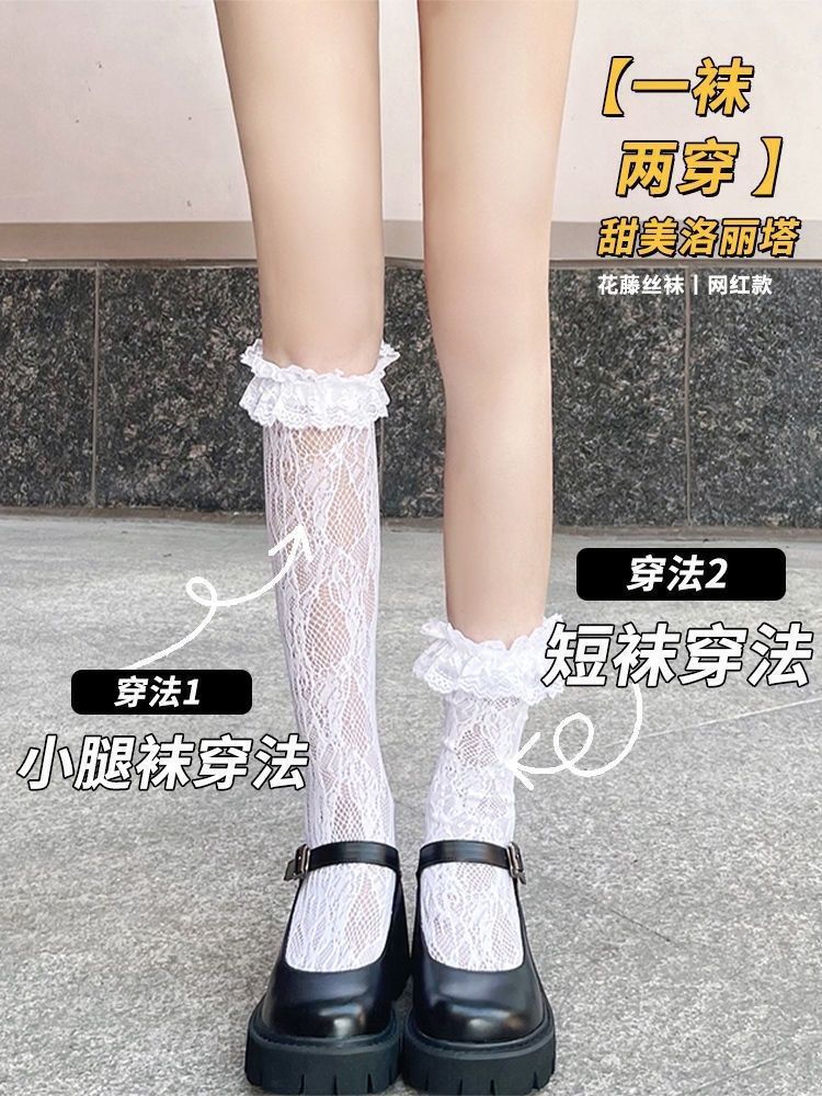 무료 배송 레이스 새끼 양말 검은 양말 여자 JK 중간 길이 양말 긴 로리타 일본 스타일 귀여운 올 매치 양말스토어 가기
