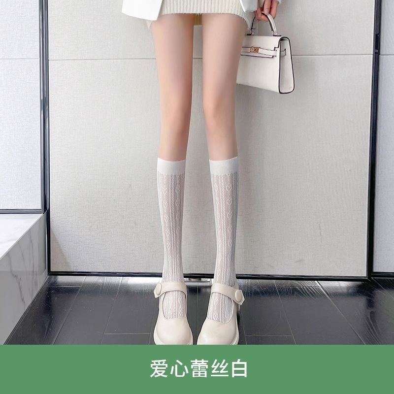 • 레이스 세로 스트라이프 하트 송아지 화이트