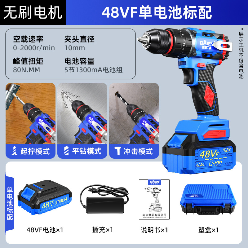 • 48VF 전기 드릴 브러시리스 2단 충격 포함 배터리 1개 충전 1개