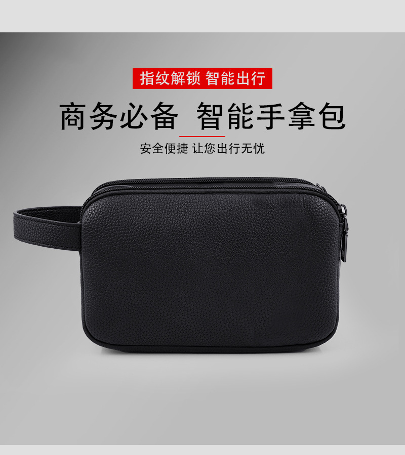 비즈니스 남성 클러치 백 새로운 다기능 대용량 지능형 도난 방지 휴대 전화 가방 캐주얼 지문 잠금 클러치 백스토어 가기