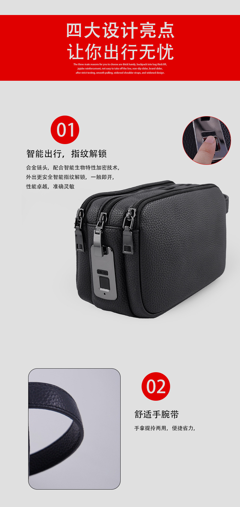 비즈니스 남성 클러치 백 새로운 다기능 대용량 지능형 도난 방지 휴대 전화 가방 캐주얼 지문 잠금 클러치 백