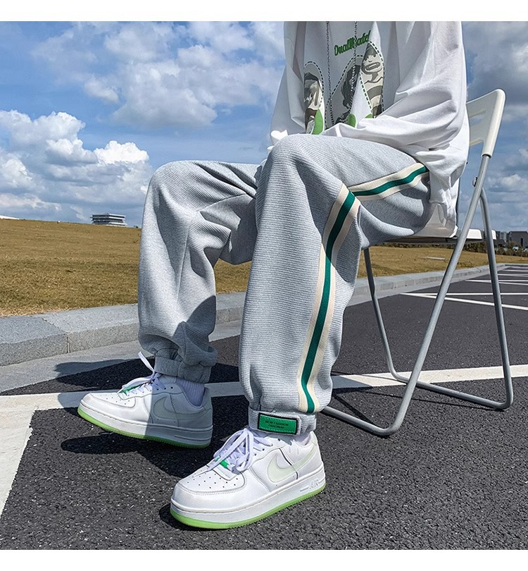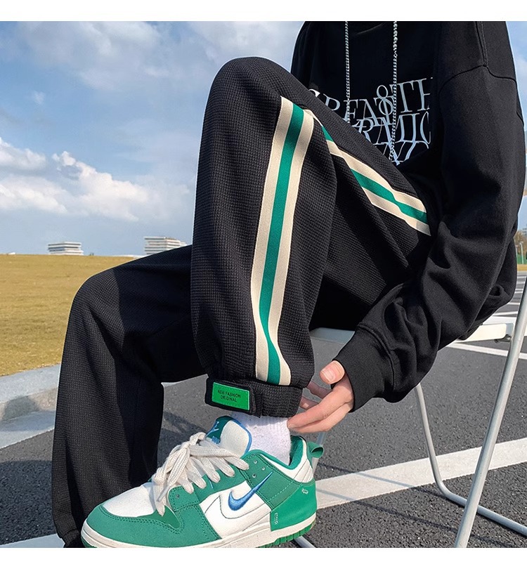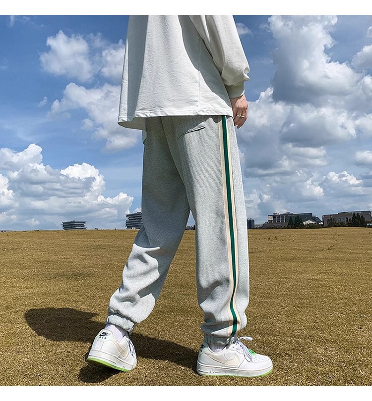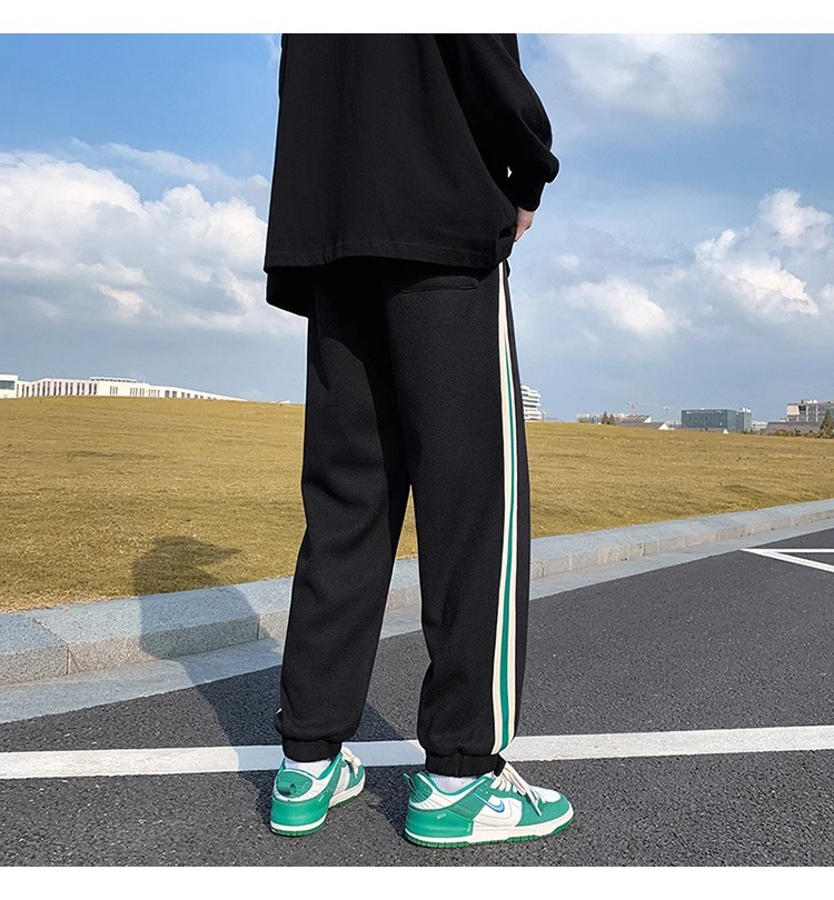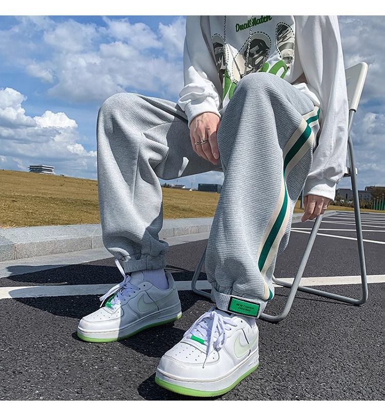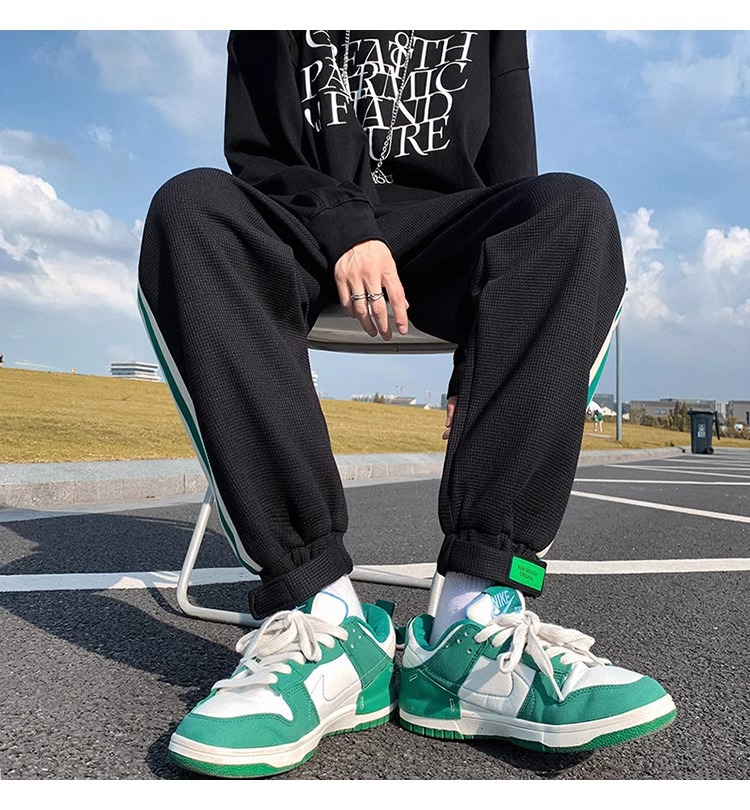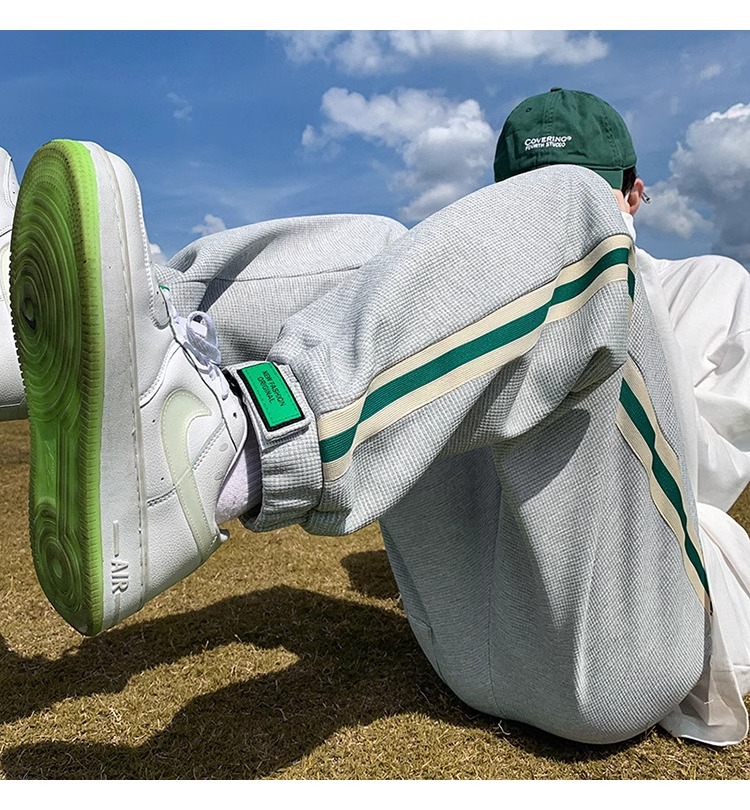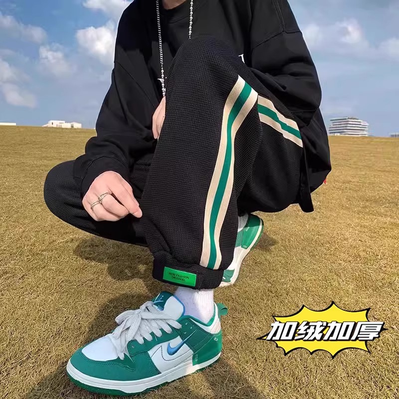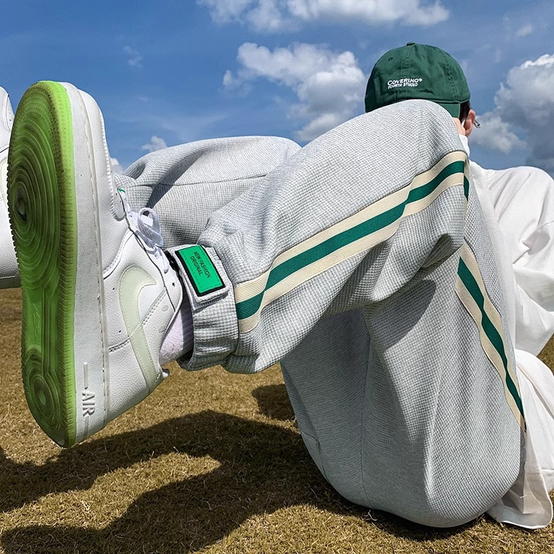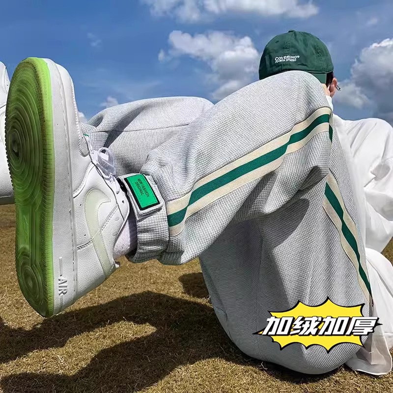 남성용 와플 팬츠 봄 가을 벨크로 조임끈 기모 스웨트팬츠 남성용 아메리칸 캐주얼 스포츠 바지 트렌디스토어 가기