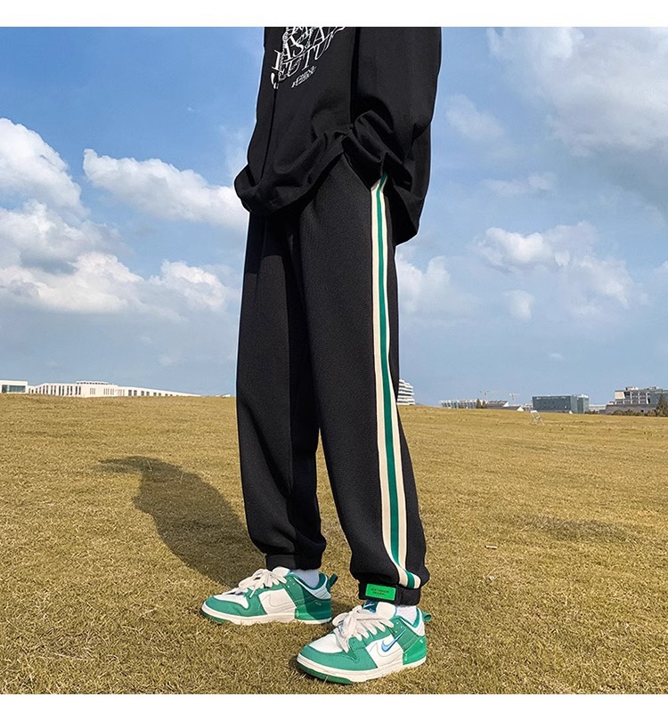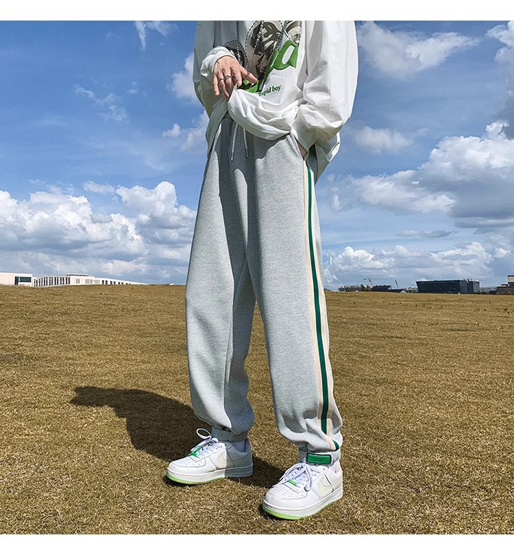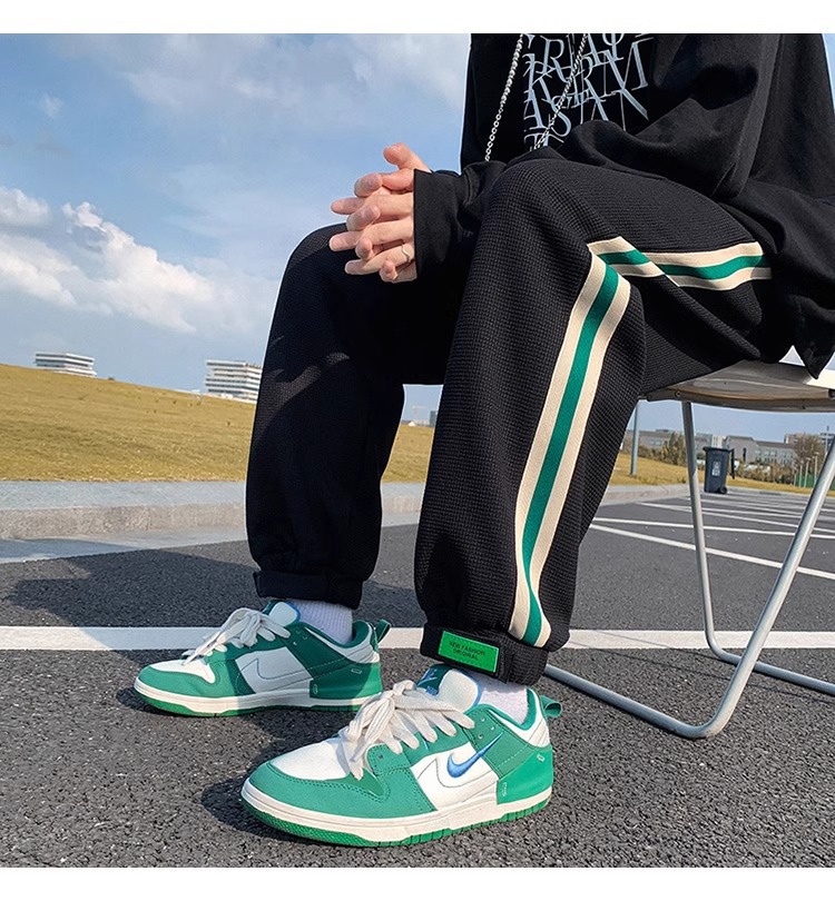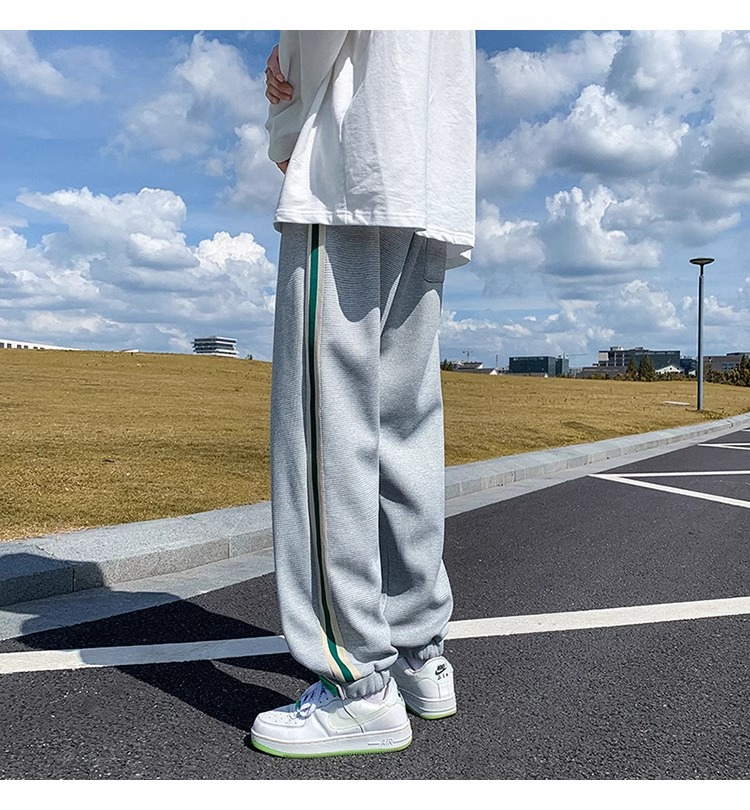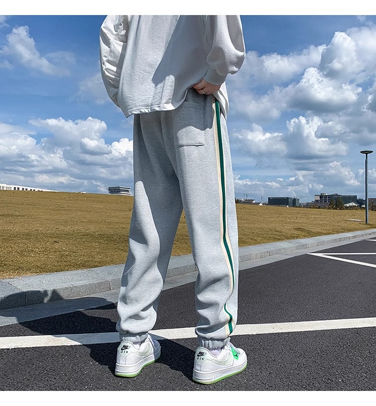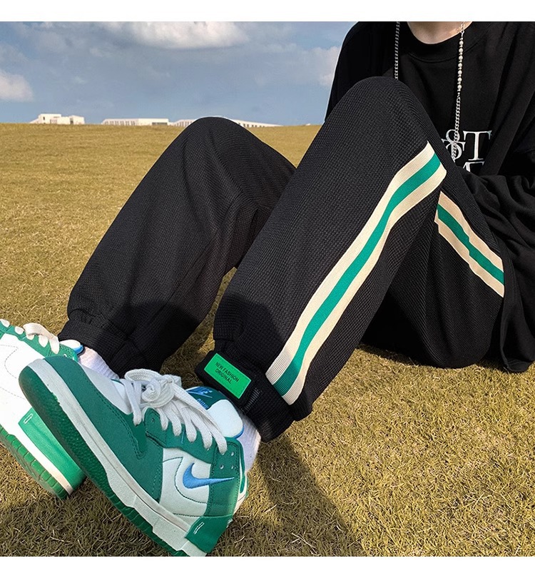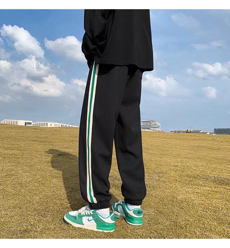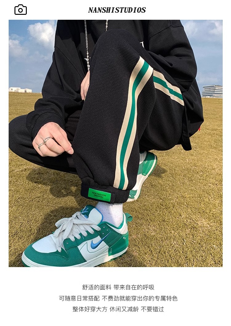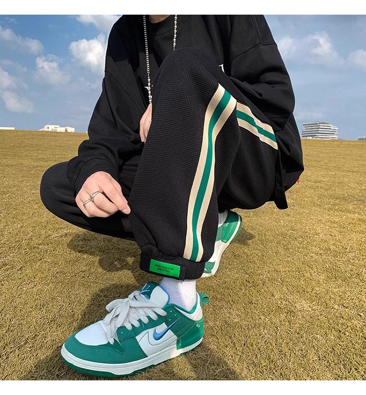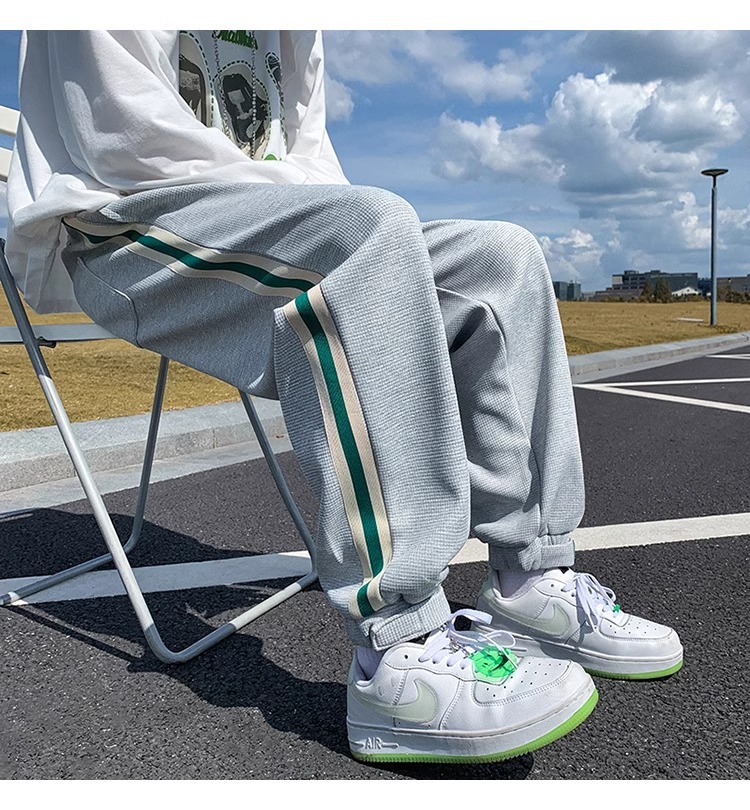 남성용 와플 팬츠 봄 가을 벨크로 조임끈 기모 스웨트팬츠 남성용 아메리칸 캐주얼 스포츠 바지 트렌디스토어 가기