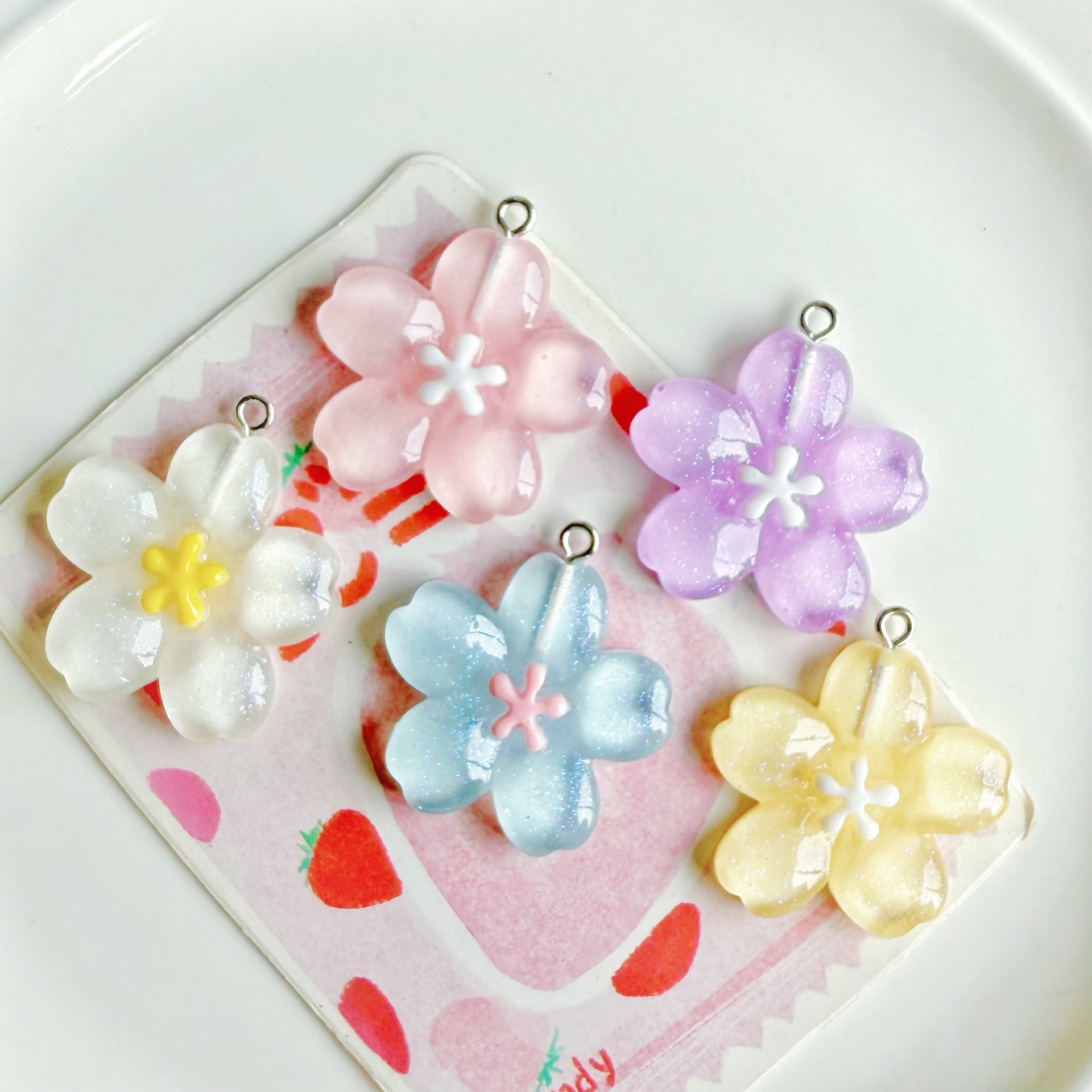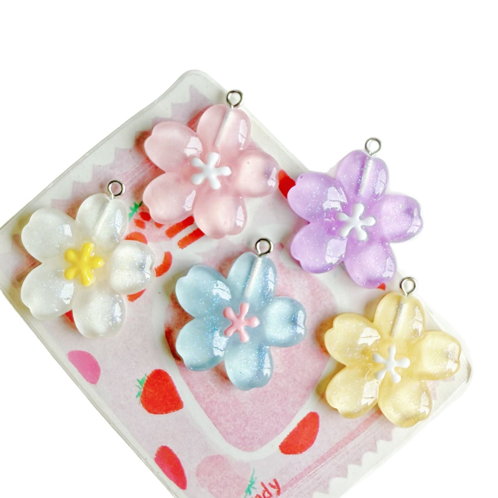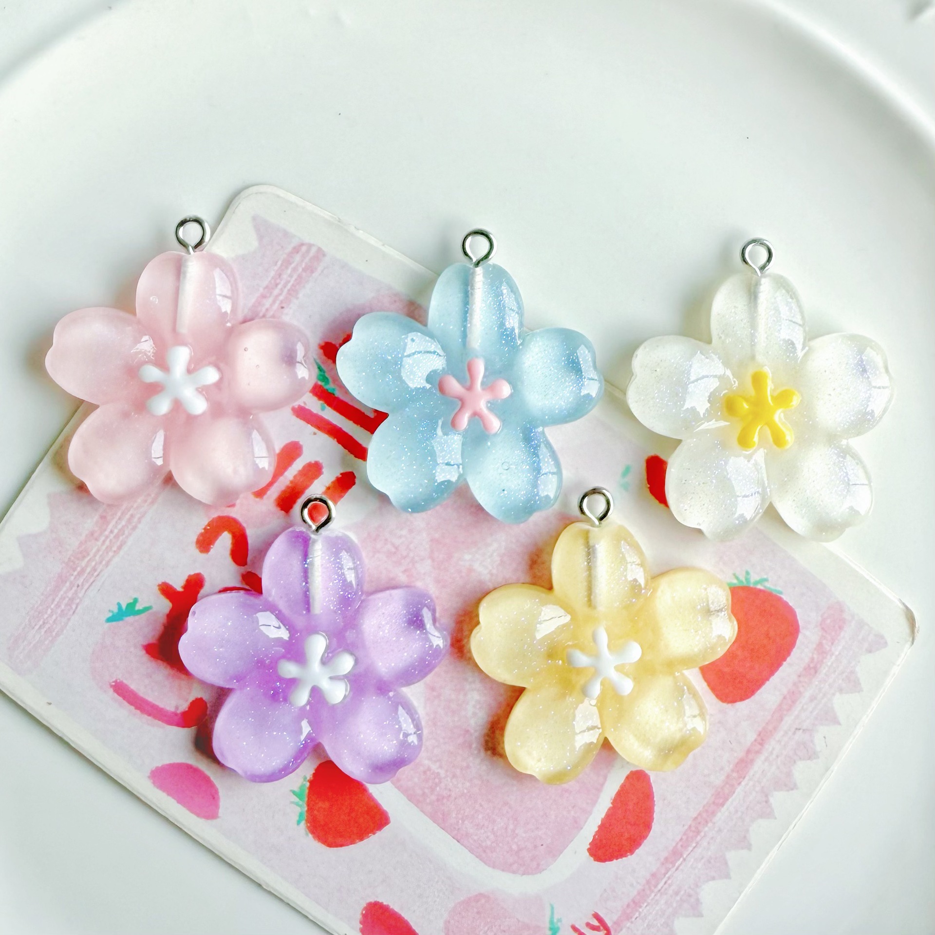 작은 신선한 수지 시뮬레이션 반짝이 투명 5 꽃잎 꽃 데이지 꽃 키 체인 펜던트 diy 보석 액세서리